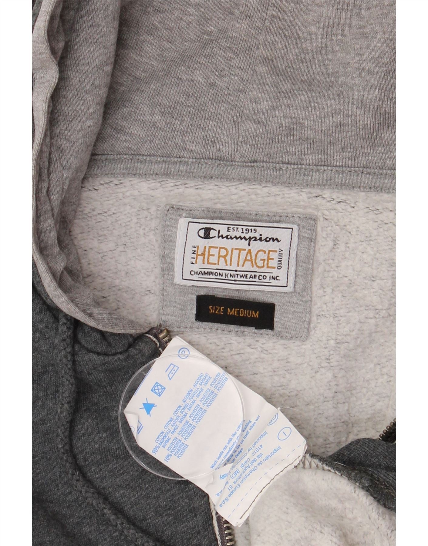 Home > Abbigliamento da campione vintage > Uomo > Felpa > CHAMPION Maglione con cappuccio e zip Heritage da uomo in cotone grigio medio