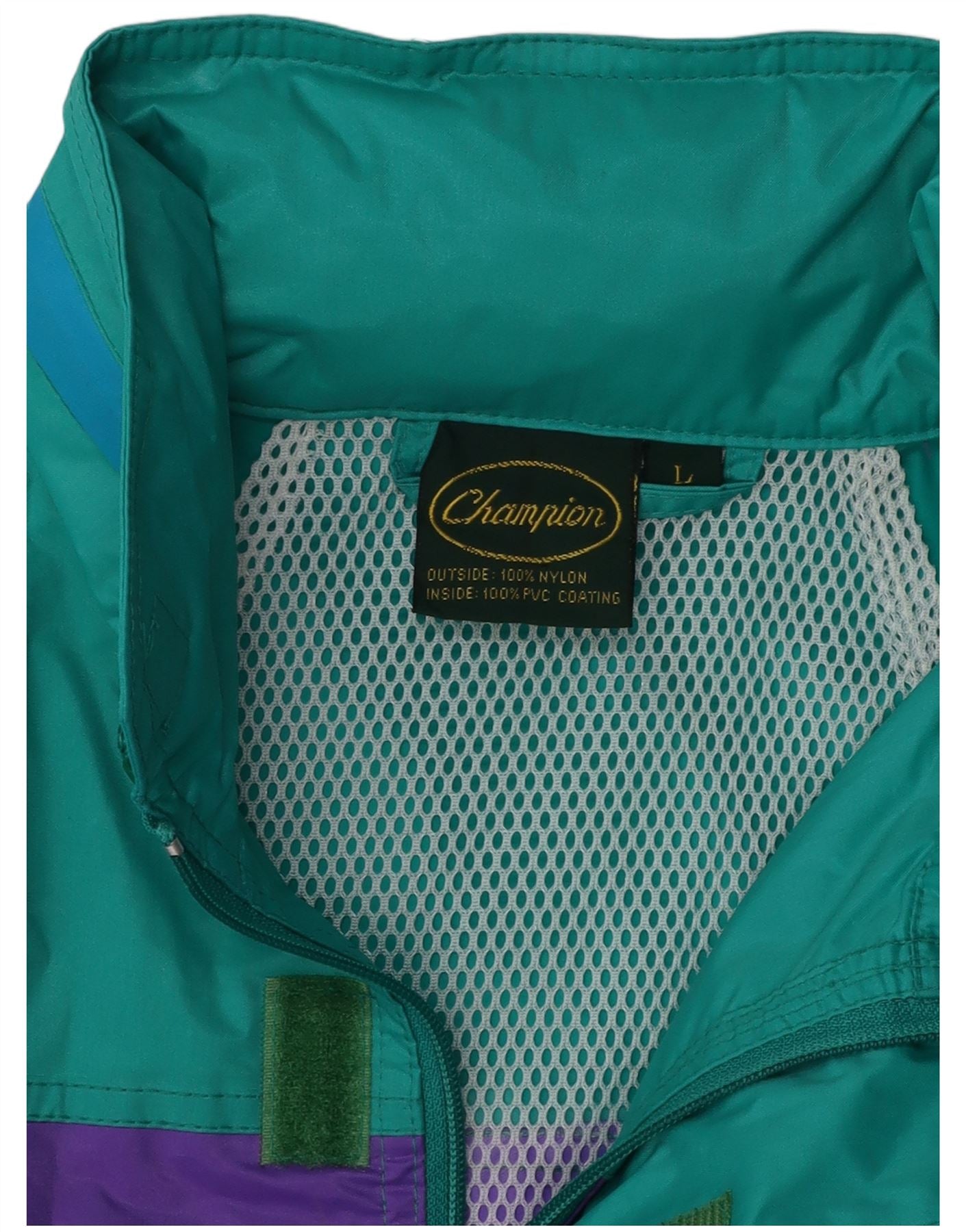 CHAMPION Giacca antipioggia da uomo con cappuccio UK 40 Large Turchese Colourblock Nylon