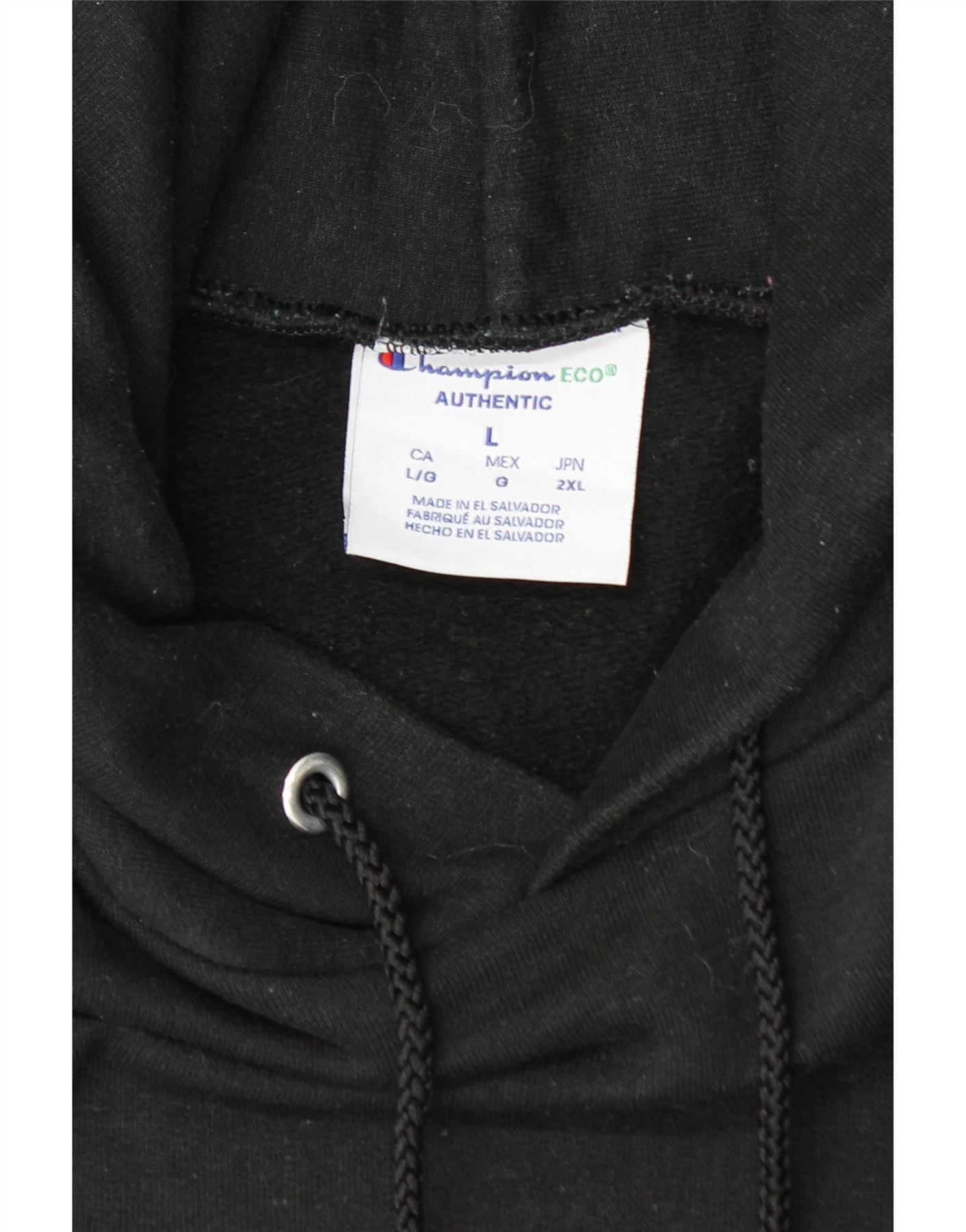 Home > Abbigliamento da campione vintage > Uomo > Felpa > Maglione con cappuccio da uomo CHAMPION grande in cotone nero
