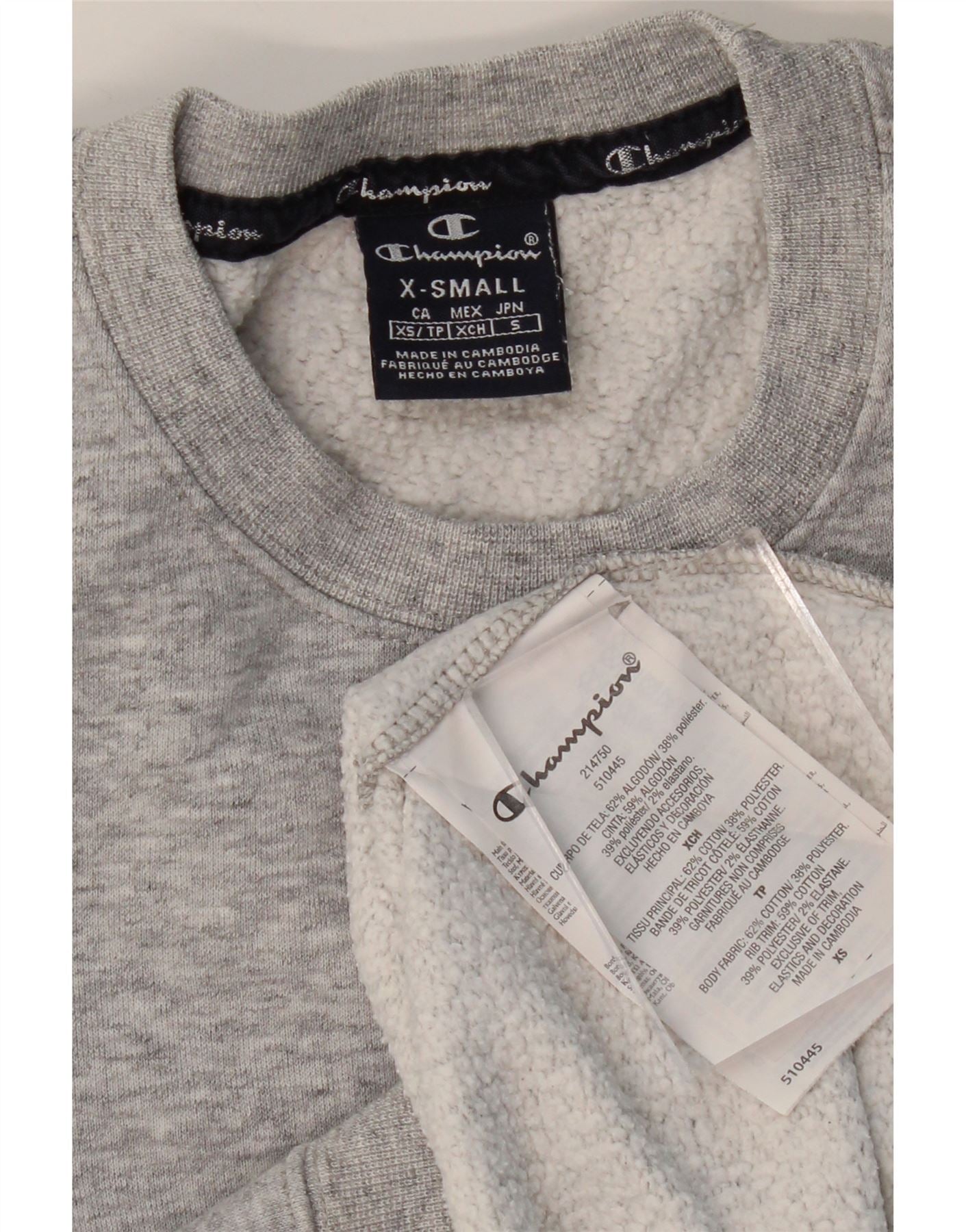 Home > Abbigliamento da campione vintage > Uomo > Felpe > Felpa da uomo CHAMPION Maglione XS Cotone chiazzato grigio