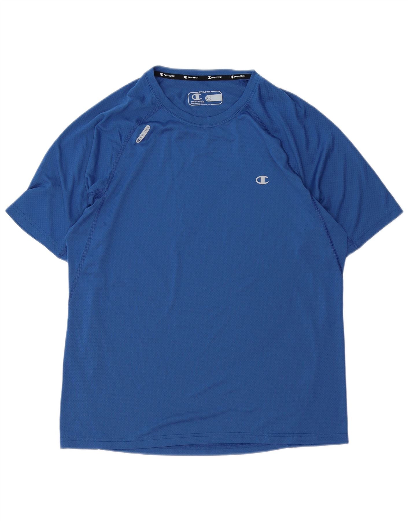 - Descrizione dell'IA: Questa maglietta da uomo Champion è realizzata in tessuto a rete blu traspirante. Presenta un classico girocollo e maniche corte per un comfort atletico. Il design a maglia offre una vestibilità regolare, ideale per lo sport e il fitness. Un sottile dettaglio del logo sul petto aggiunge un tocco distintivo. La sua costruzione leggera garantisce facilità di movimento durante qualsiasi attività.