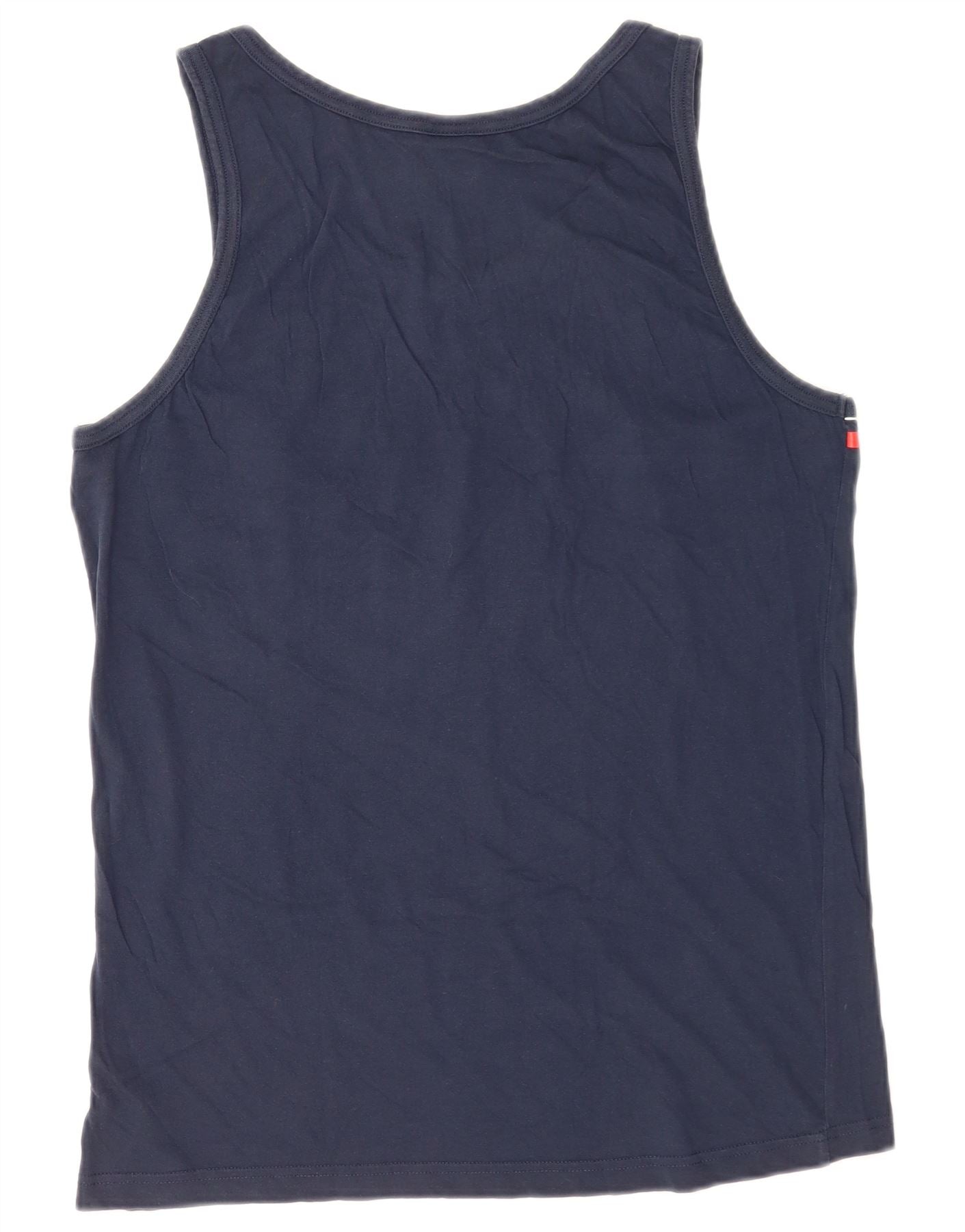 - Descrizione dell'IA: Questo gilet da uomo Champion è realizzato in morbido tessuto jersey blu navy. Presenta un classico girocollo e un design senza maniche. Una striscia prominente bianca e rossa attraversa il petto. L'iconico logo Champion è sottilmente integrato nella striscia. La vestibilità regolare garantisce comfort e facilità di movimento. Questo modello di maglione è leggero e ideale per l'abbigliamento sportivo o casual.