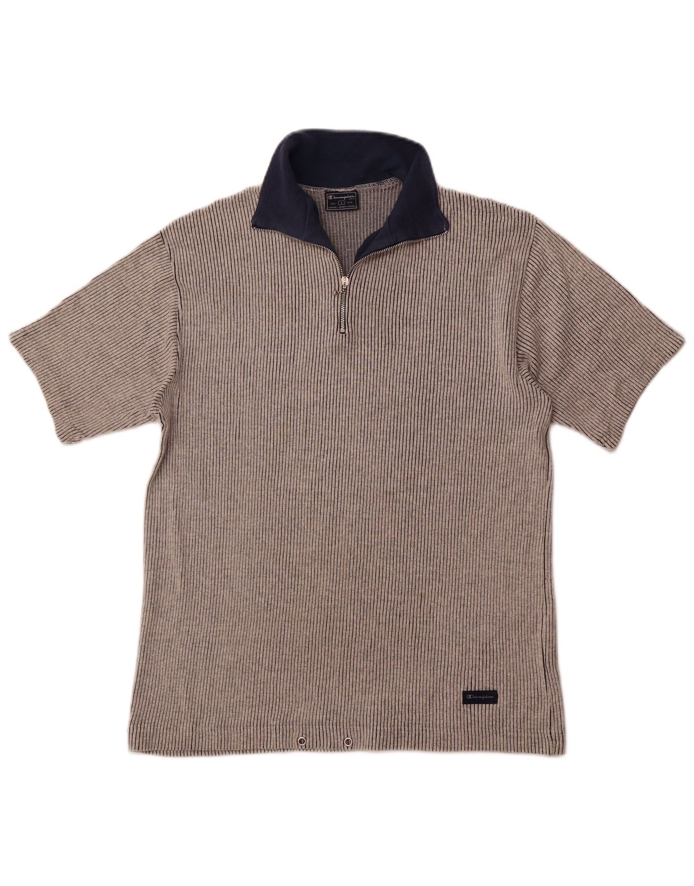 Home > Abbigliamento da campione vintage > Uomo > Magliette > CHAMPION T-shirt da uomo con zip e collo, grande, in cotone gessato grigio
