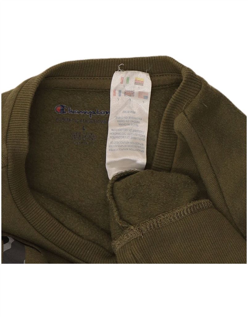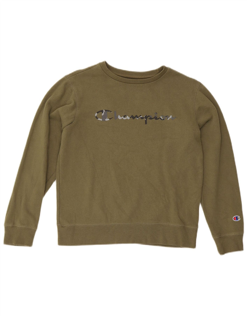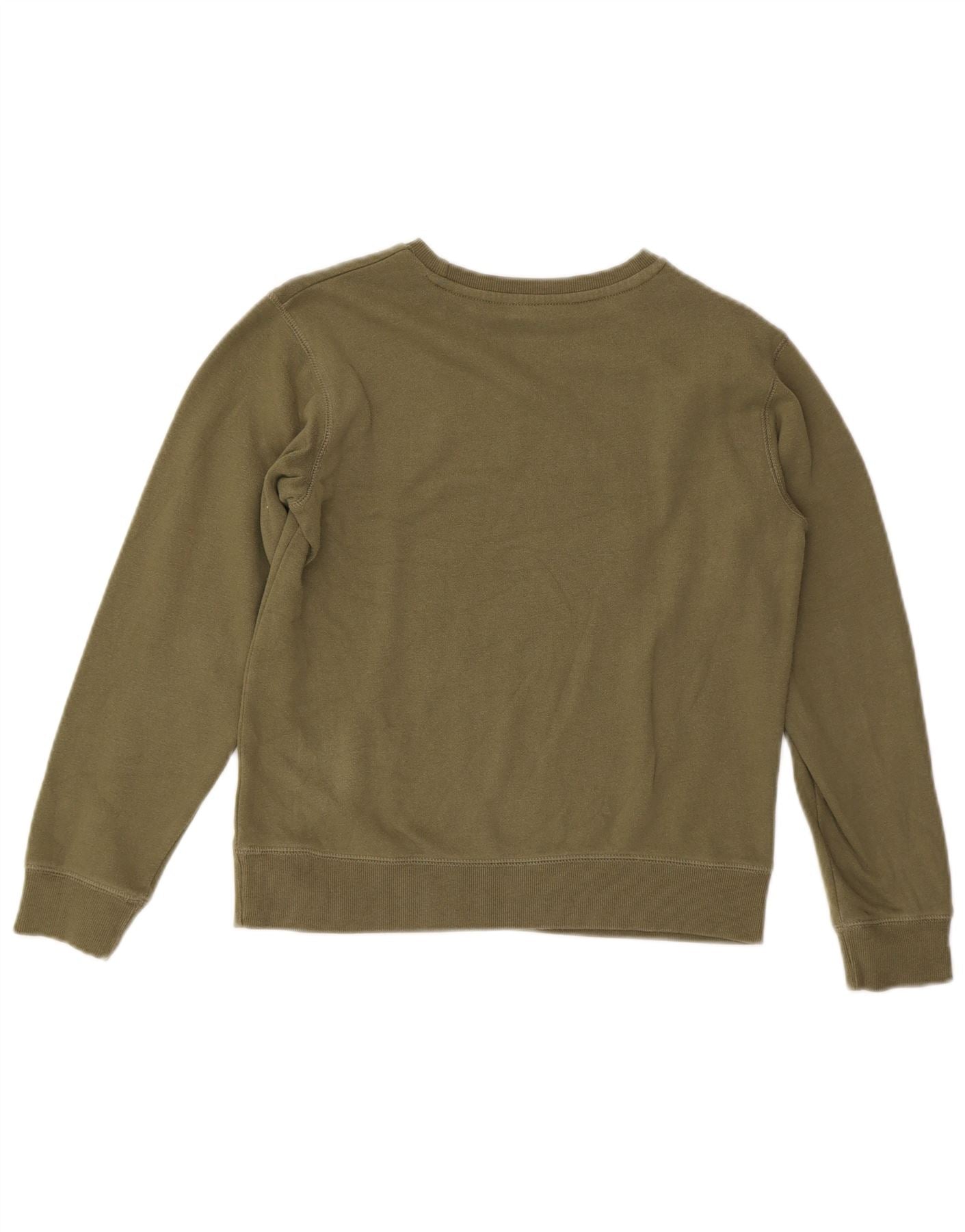 CHAMPION Womens Crop Graphic Sweatshirt Jumper UK 14 Large Khaki Cotton