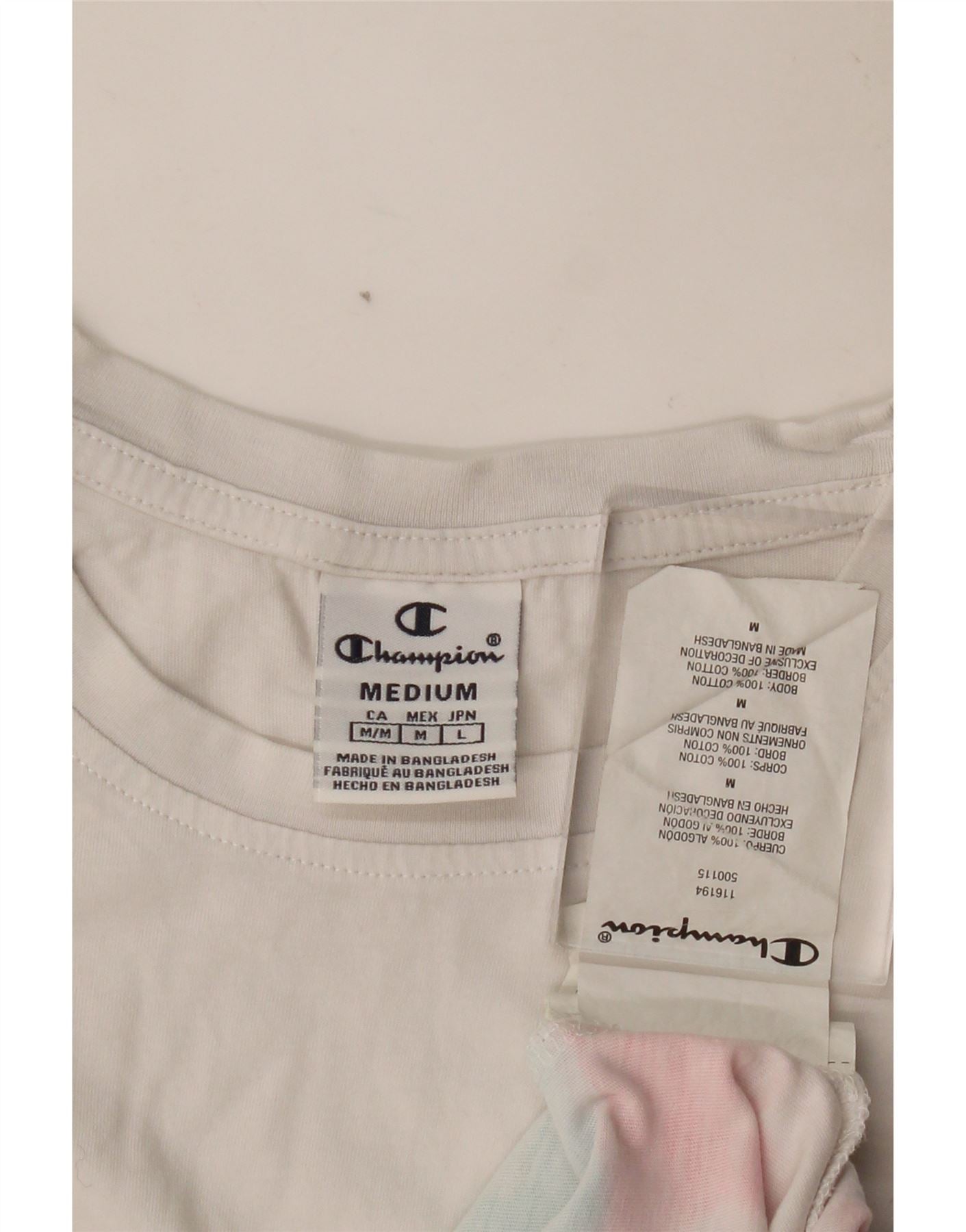T-shirt corta da donna CHAMPION Top UK 12 cotone tie-dye bianco medio