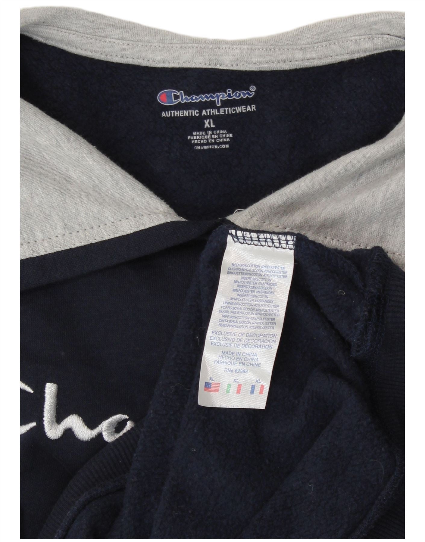Home > Abbigliamento da campione vintage > Da donna > Felpa > Maglione con cappuccio grafico da donna CHAMPION UK 18 XL Cotone blu navy