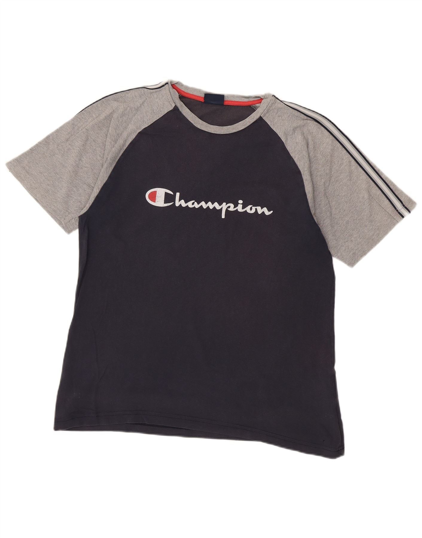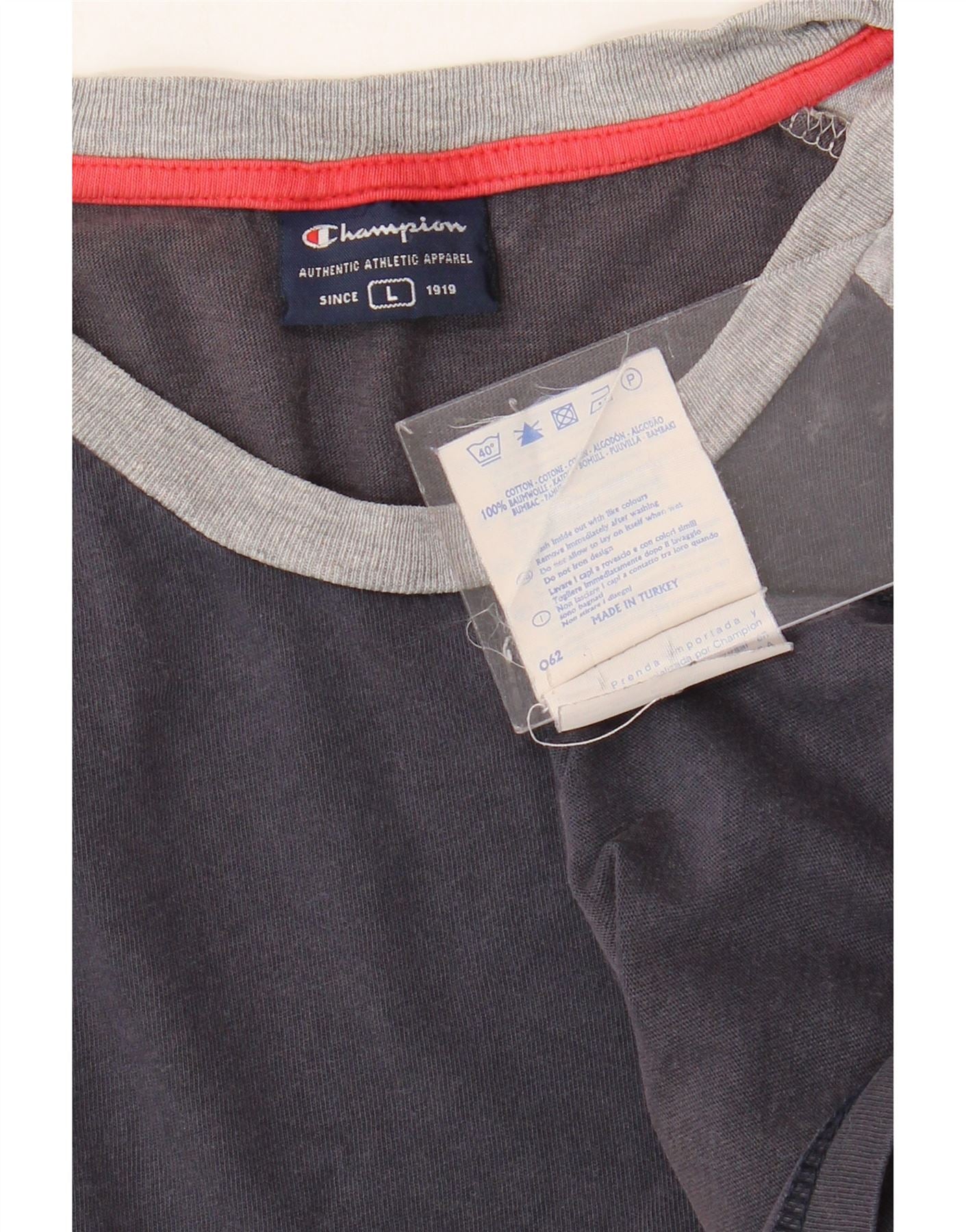 T-shirt grafica da donna CHAMPION Top UK 16 Large Blu Navy Colourblock