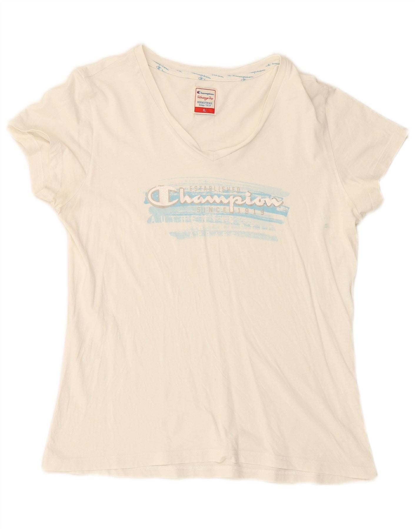 Home > Abbigliamento da campione vintage > Da donna > Magliette > CHAMPION T-shirt grafica da donna con vestibilità Heritage UK 18 XL Bianca