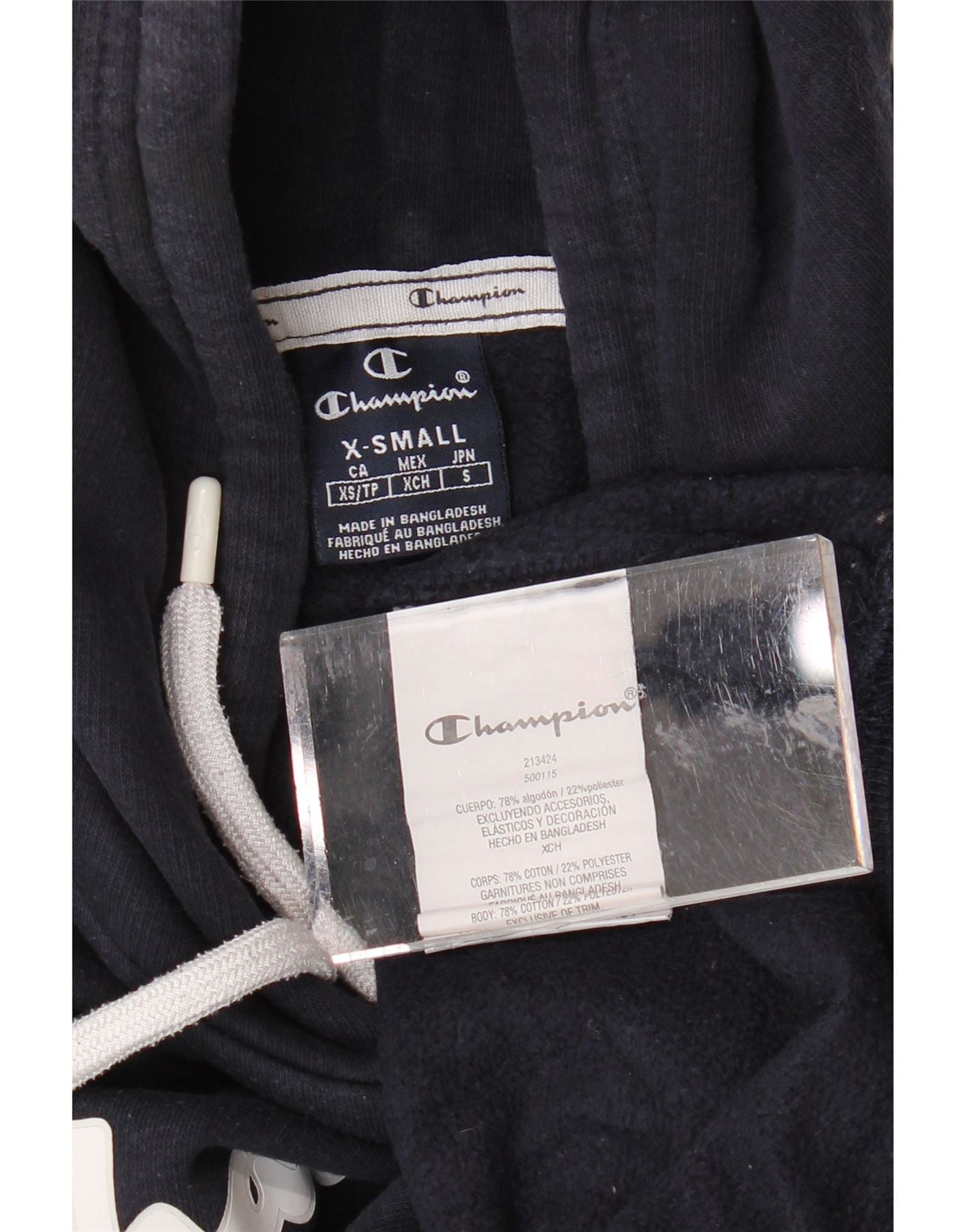 CHAMPION Womens Oversized Graphic Hoodie Jumper UK 6 XS Navy Blue Cotton