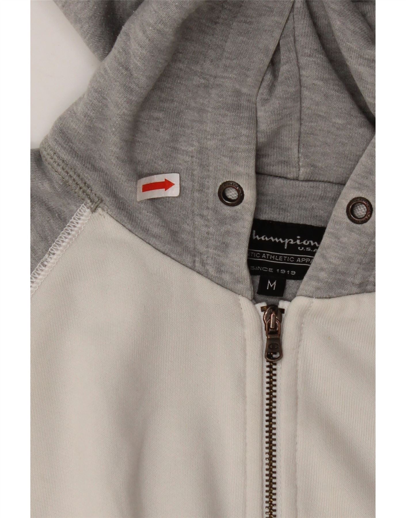 Home > Abbigliamento da campione vintage > Da donna > Felpa > Maglione con cappuccio e zip da donna CHAMPION UK 14 Cotone color block bianco medio