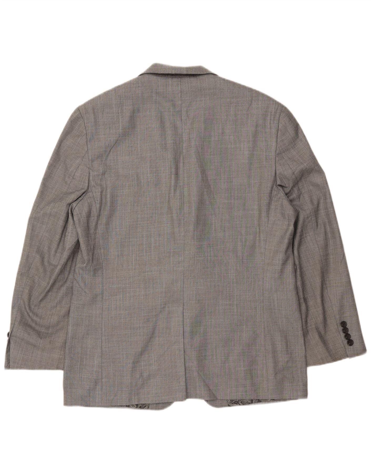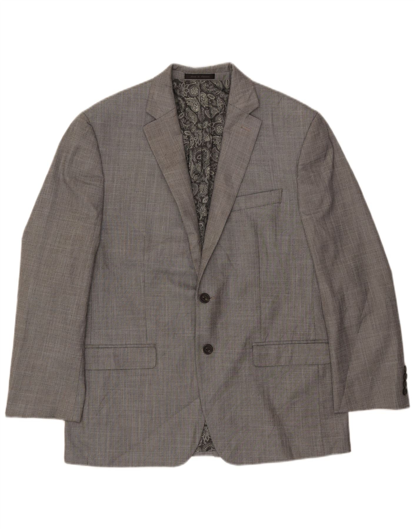 Giacca blazer da uomo a 2 bottoni Chaps UK 40 grande poliestere Chevron grigio