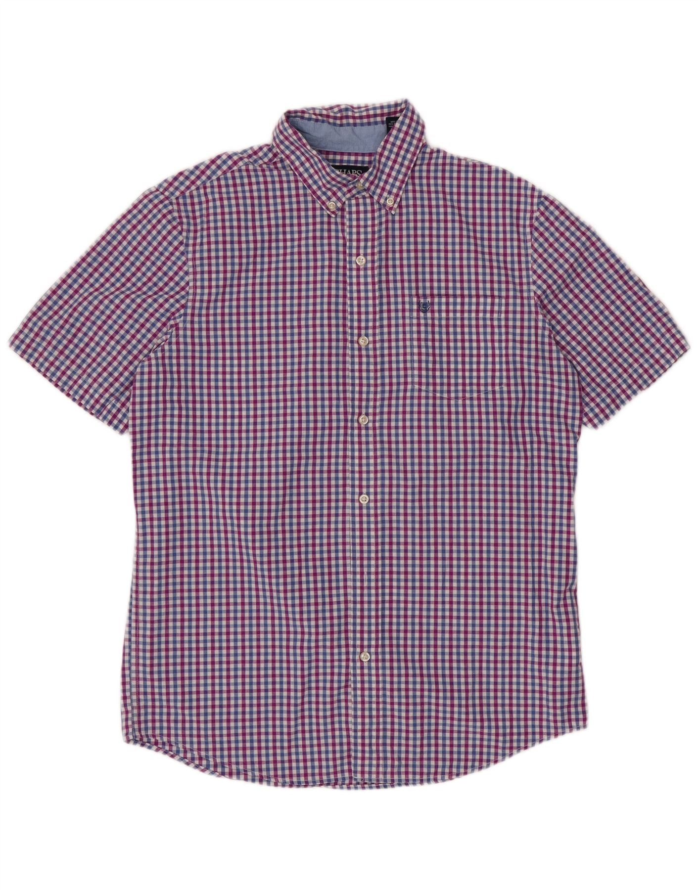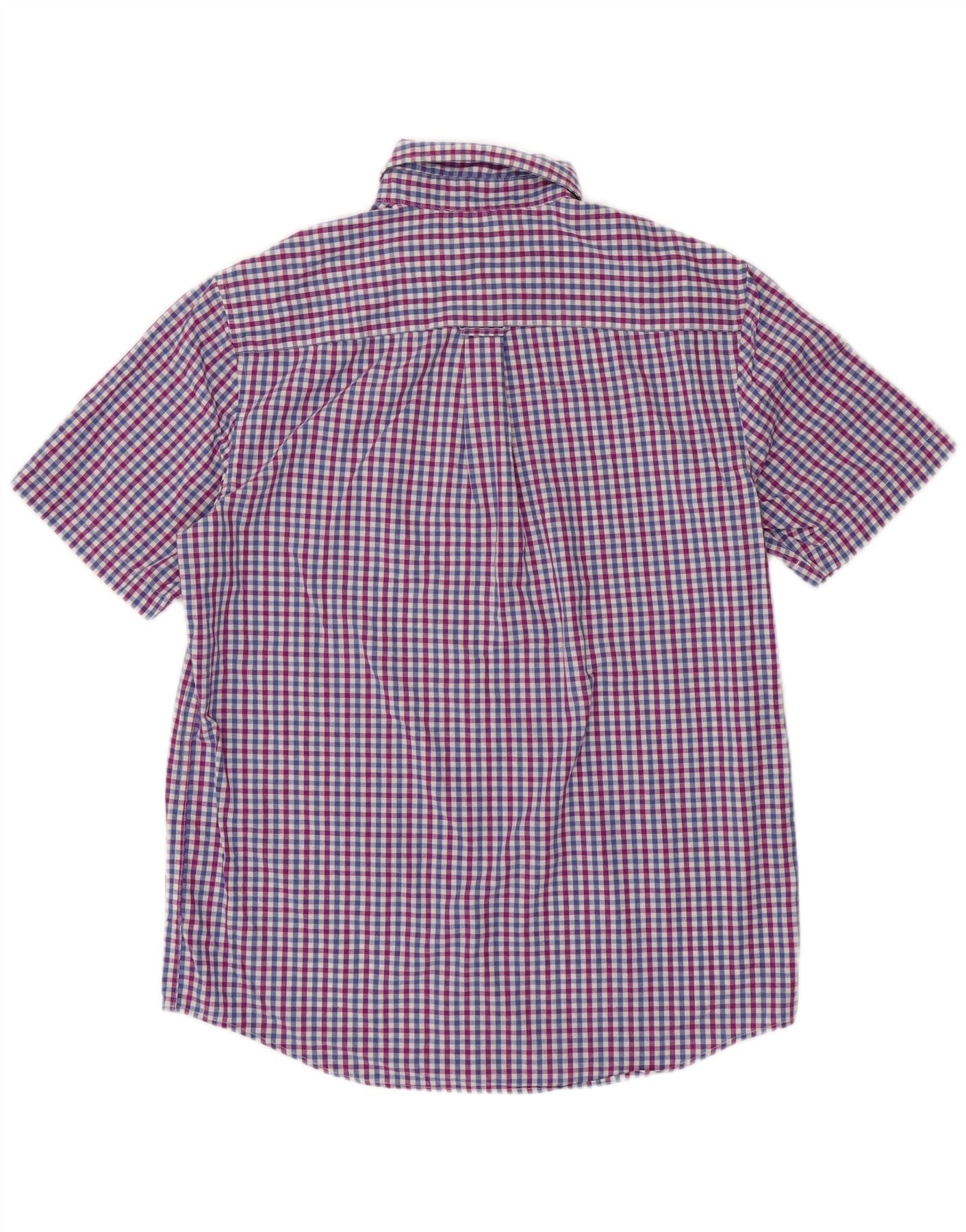 CHAPS Camicia a maniche corte da uomo di facile manutenzione in cotone a quadretti blu medio