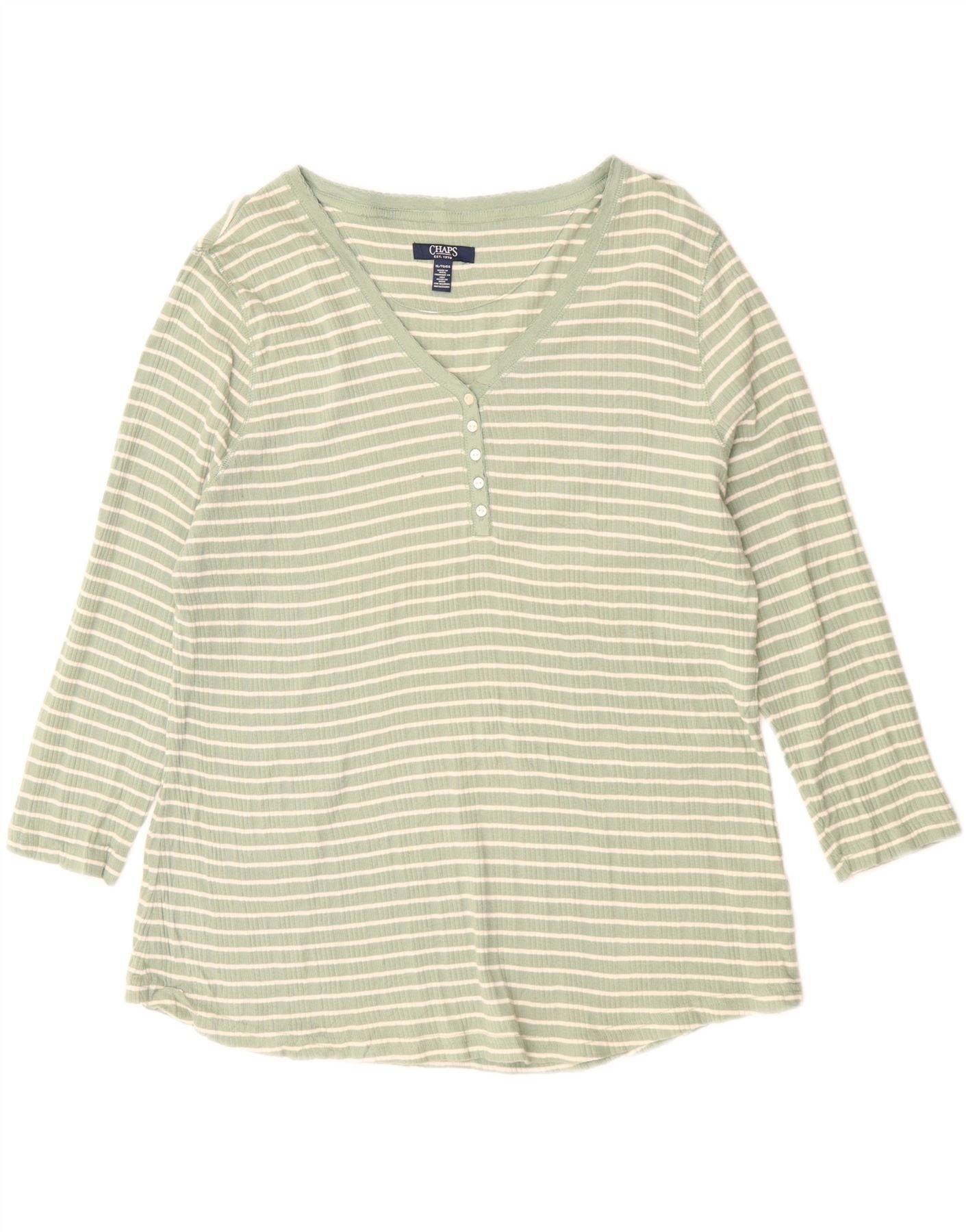 Chaps Maglia da donna manica 3/4 UK 18 XL Cotone a righe verdi