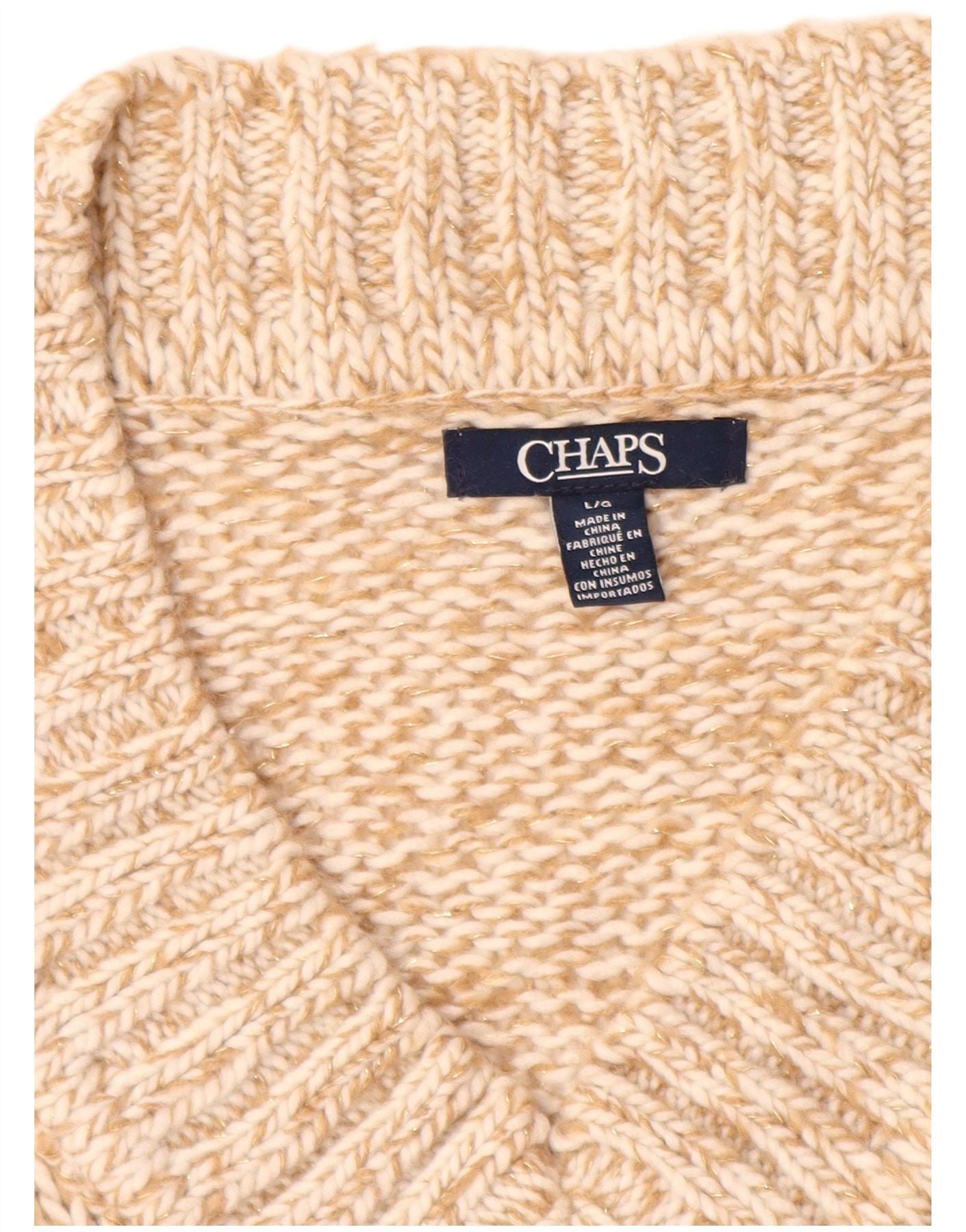 Maglione da donna con scollo a V CHAPS UK 16 Grande acrilico screziato beige