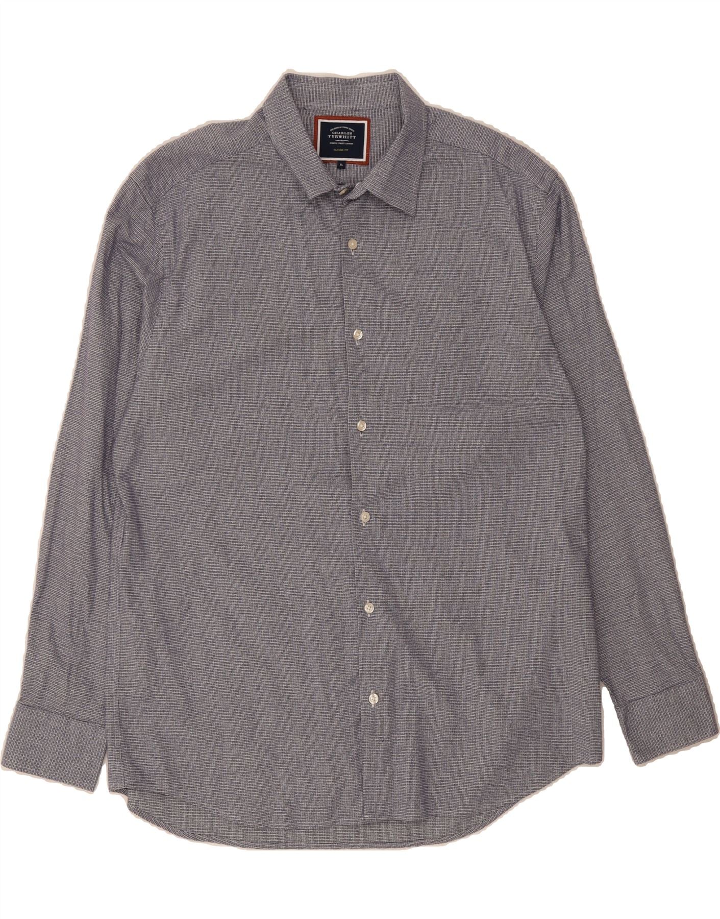 CHARLES TYRWHITT Mens Classic Fit Shirt XL Navy Blue Houndstooth Cotton