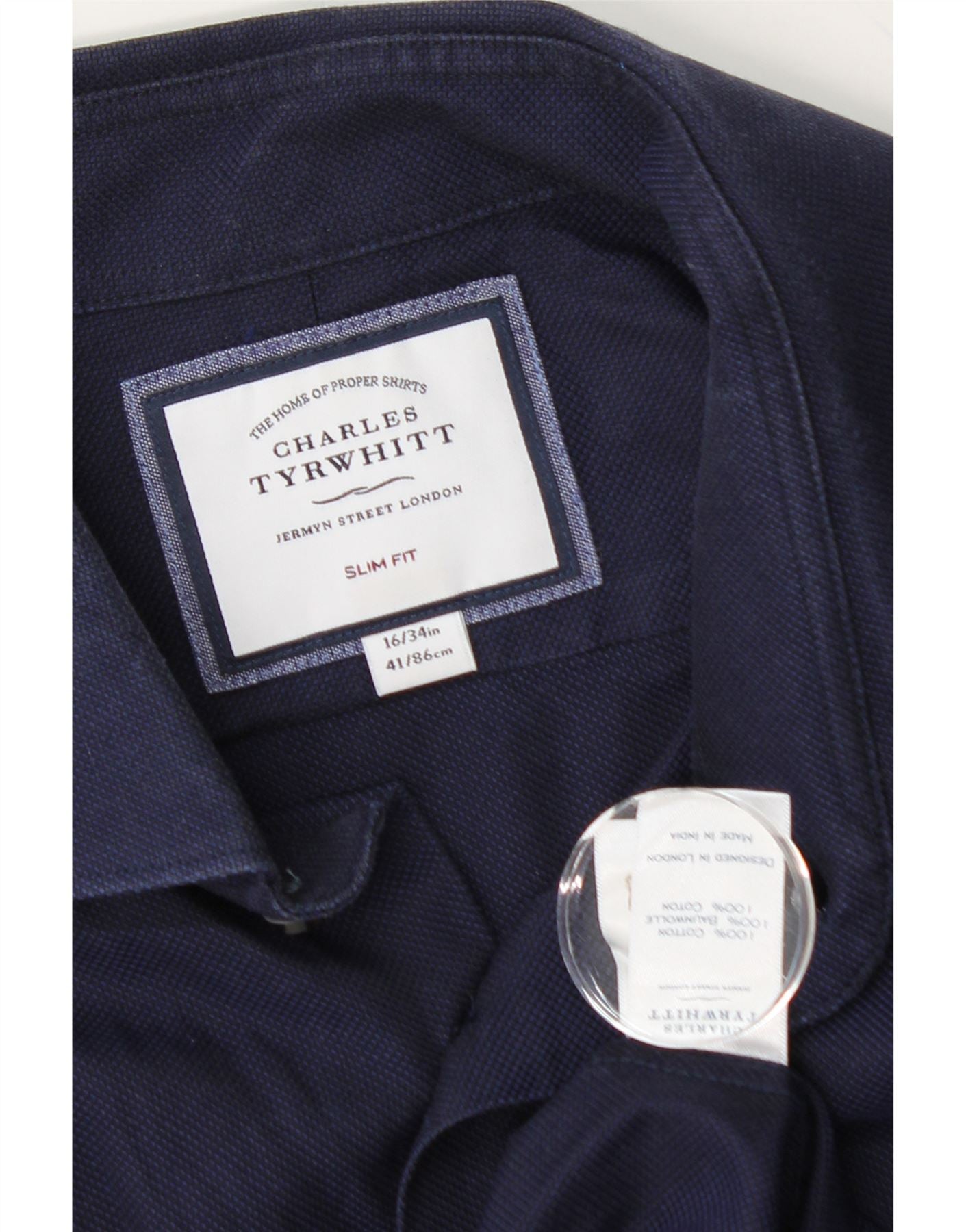 CHARLES TYRWHITT Mens Slim Fit Shirt Size 41 16 Large Navy Blue Cotton
