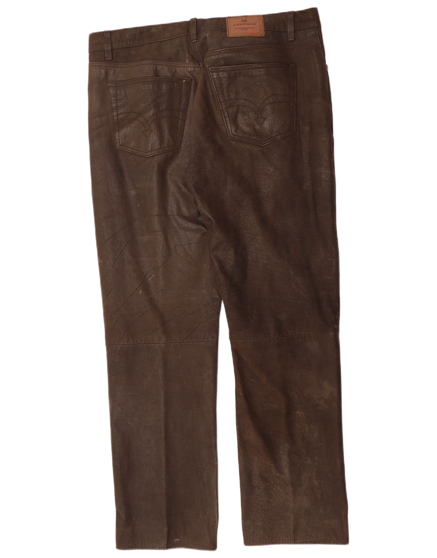 Pantaloni dritti in pelle da uomo CHEVIREX W40 L33 Pelle marrone