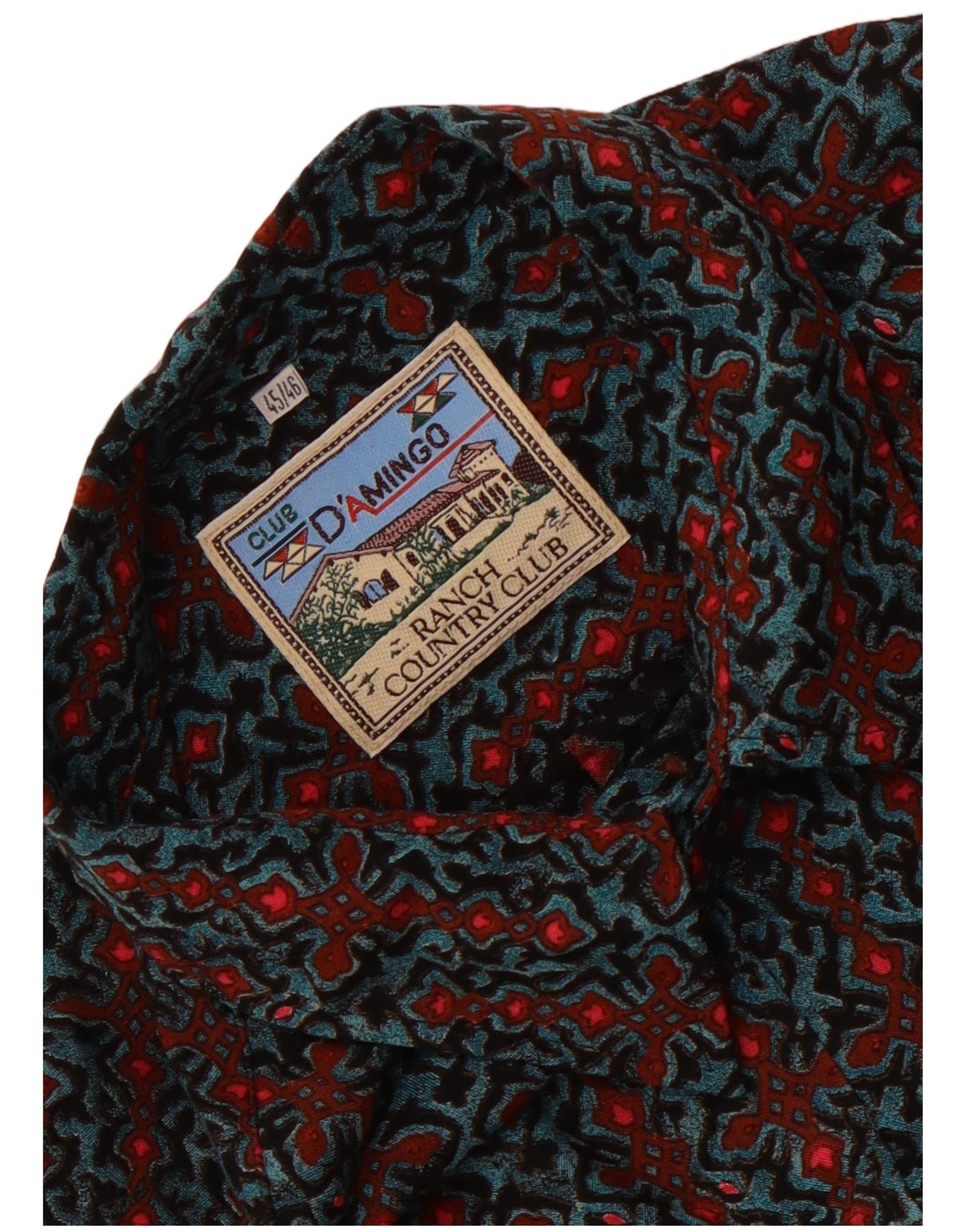- Descrizione dell'IA: Questa camicia da uomo Club Damingo è realizzata in tessuto intrecciato, offrendo una consistenza morbida. Presenta un sorprendente motivo geometrico multicolore nei toni del nero, rosso e blu. Lo scollo con colletto e la chiusura con bottoni forniscono una struttura classica. Le maniche lunghe completano il design. La sua vestibilità regolare garantisce una vestibilità comoda e una silhouette senza tempo. Questa camicia in stile retrò offre un fascino visivo distintivo.