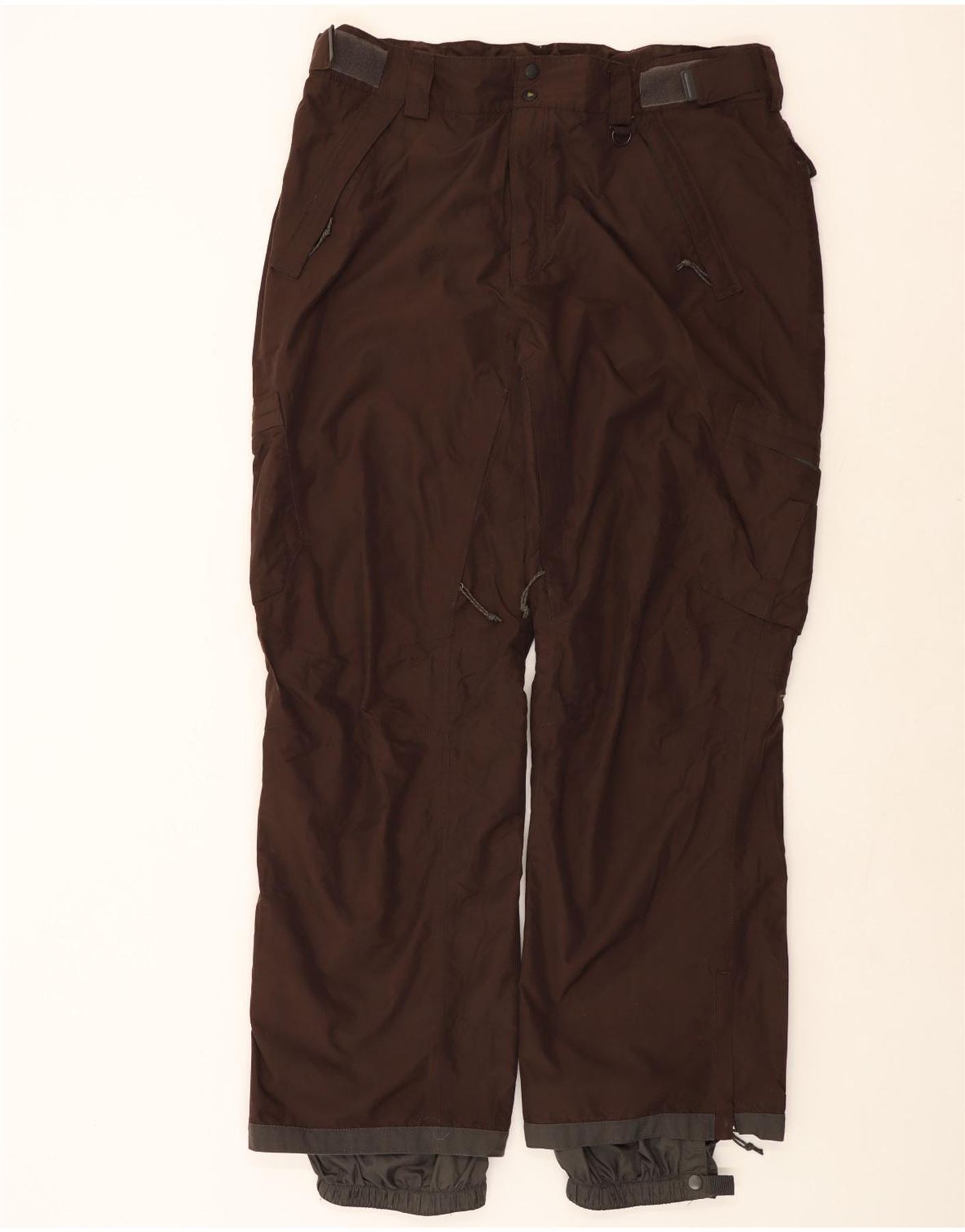 - Descrizione dell'IA: Questi pantaloni impermeabili da uomo Columbia sono realizzati in resistente nylon marrone intrecciato, che offre una finitura liscia e robusta. Presentano una vestibilità regolare con chiusura a zip per un'usura sicura. Molteplici tasche cargo offrono un pratico spazio di archiviazione. Il design include una fodera in rete traspirante per il massimo comfort. Gli accenti con cerniera e la struttura impermeabile li rendono ideali per gli sport invernali come lo sci.