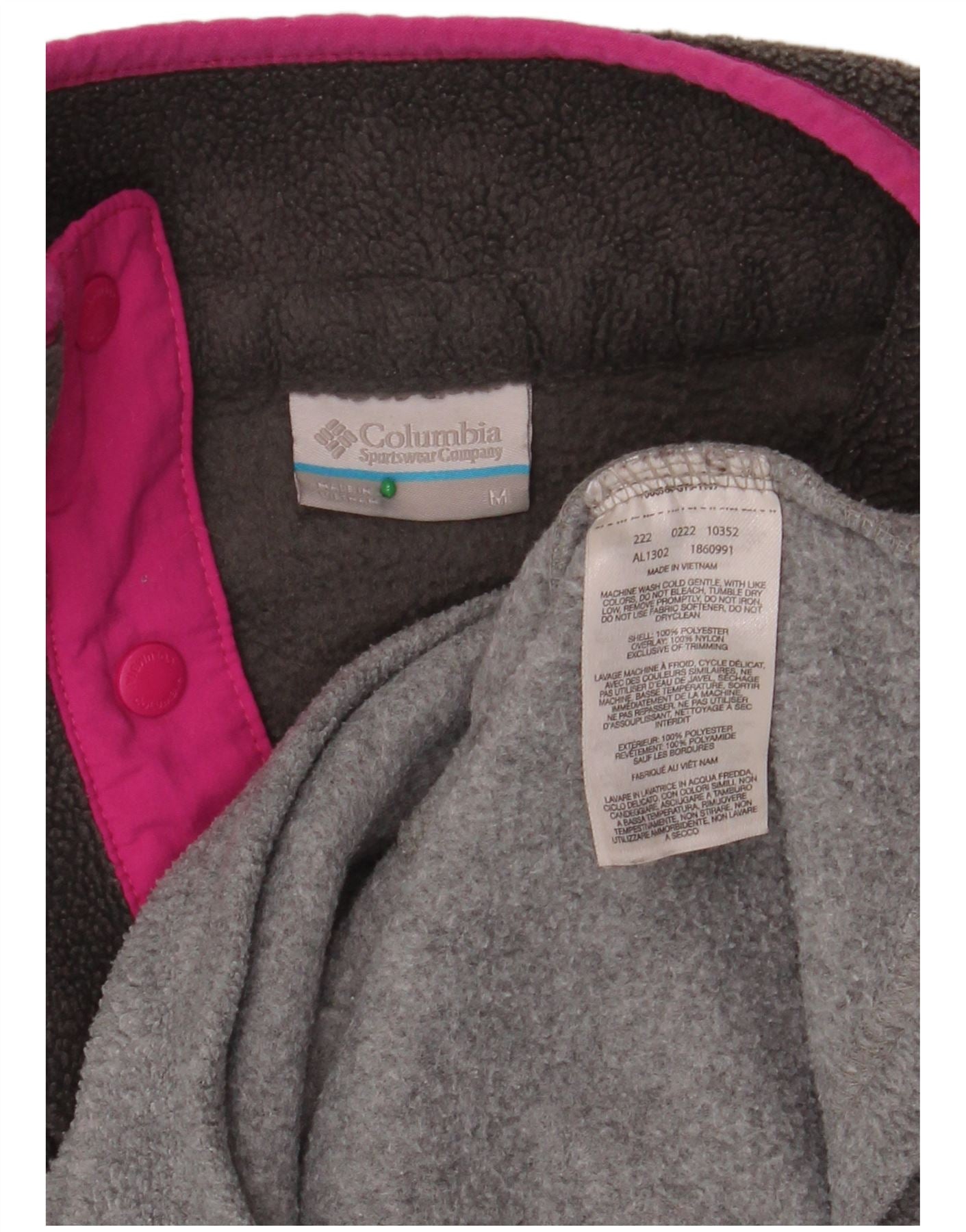 Maglione in pile da donna COLUMBIA con collo a bottoni UK 14 Blocco colore grigio medio