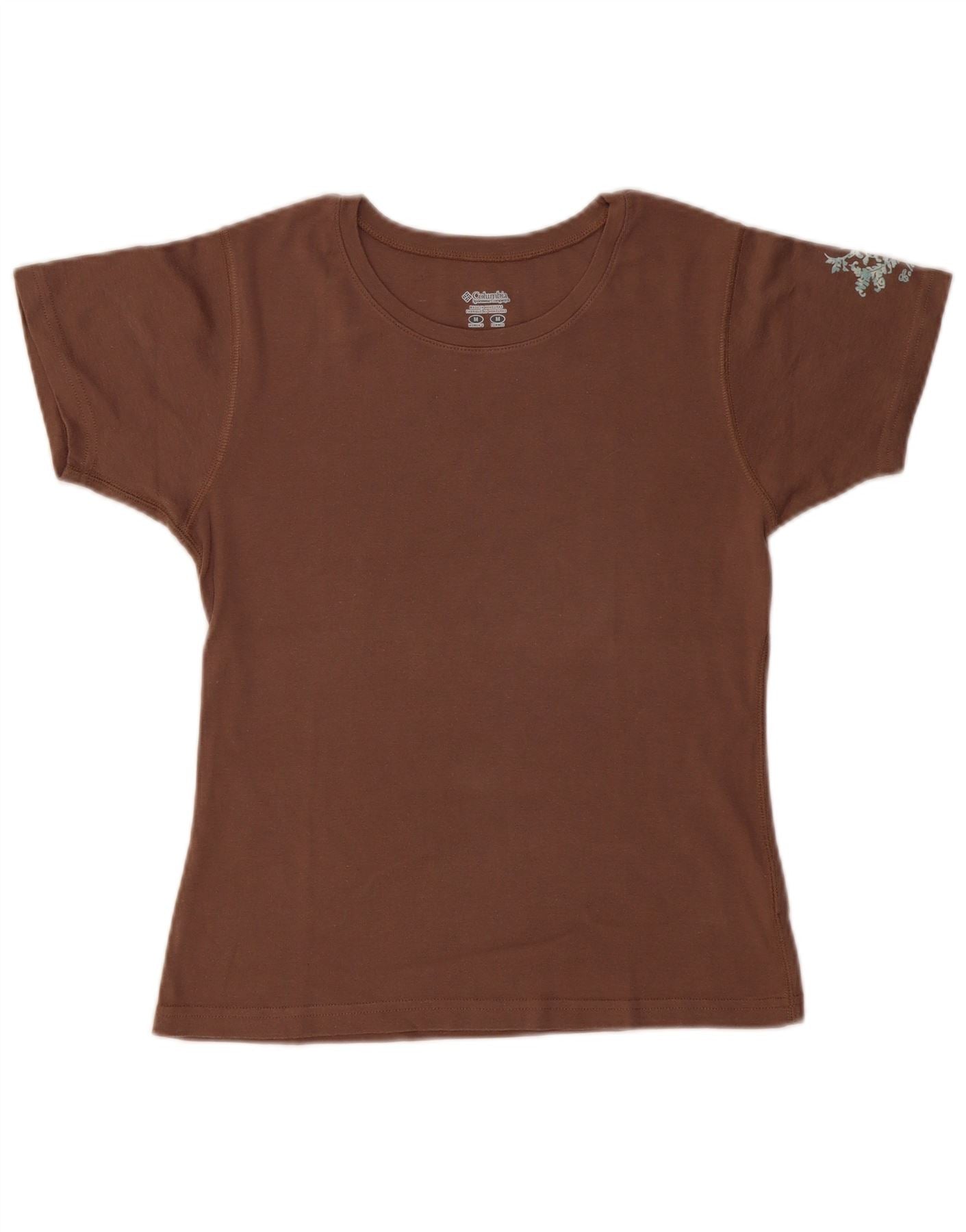 COLUMBIA Womens Graphic T-Shirt Top UK 12 Medium Brown Paisley Cotton