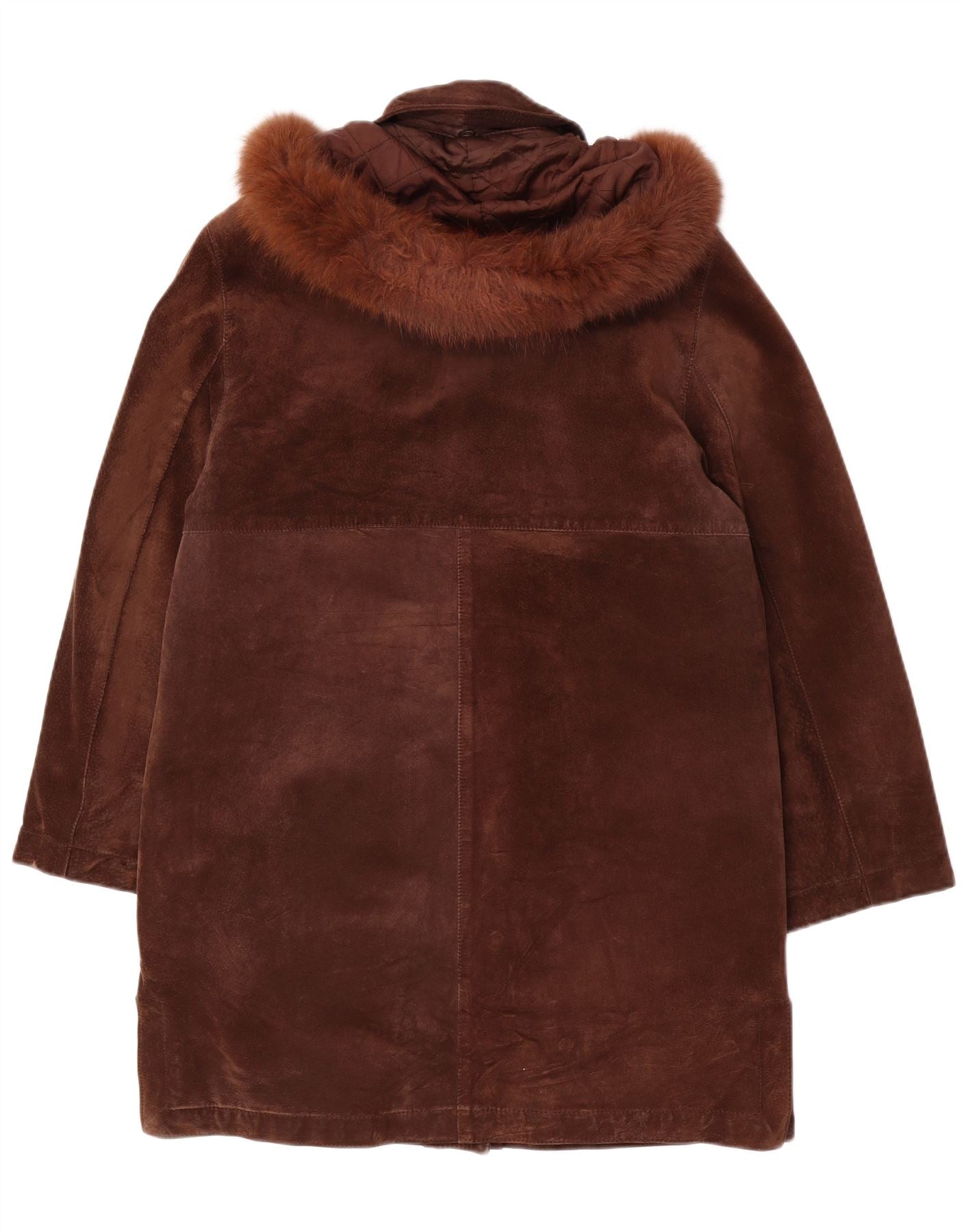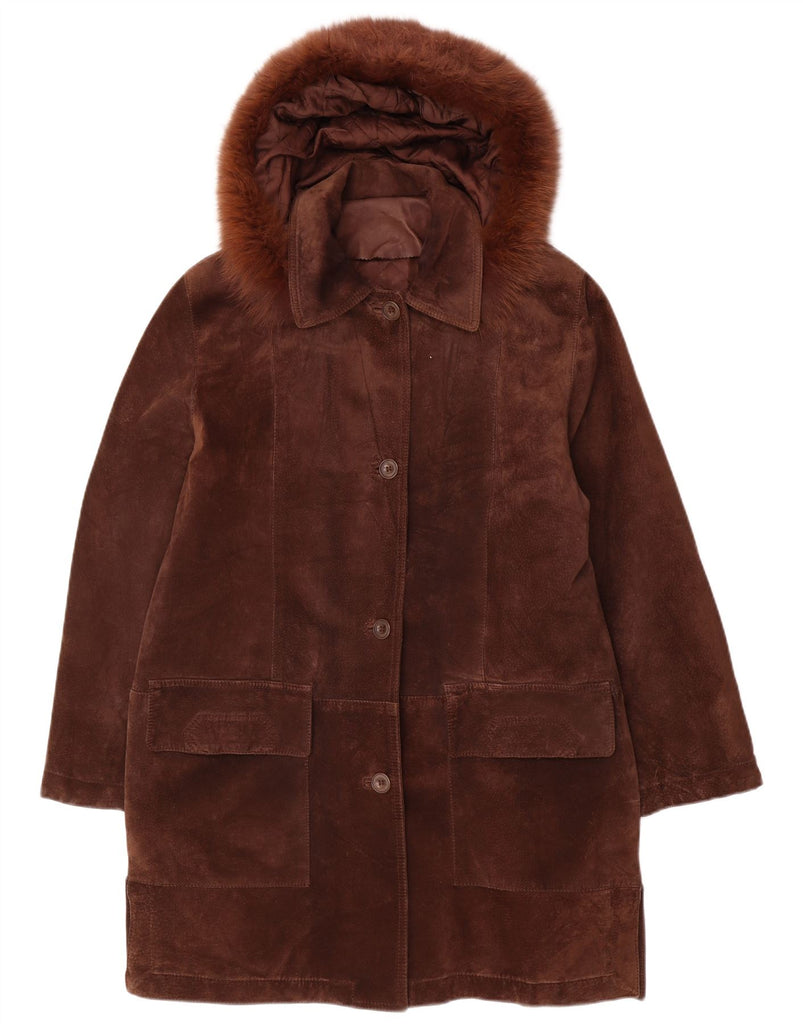 CONBIPEL Cappotto Donna in Pelle Scamosciata con Cappuccio IT 42 Pelle Marrone Medio