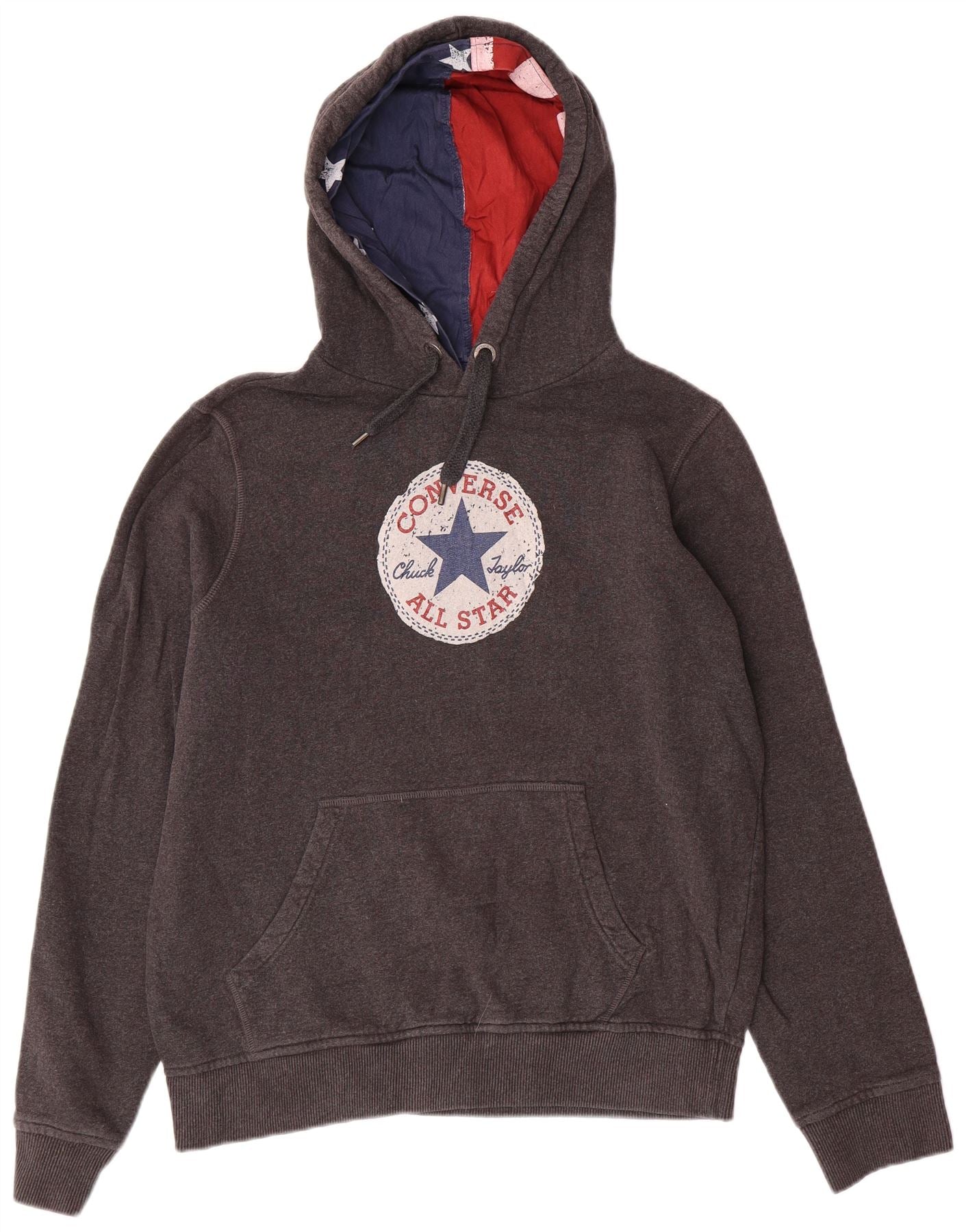CONVERSE Felpa con cappuccio grafica da uomo in cotone grigio medio