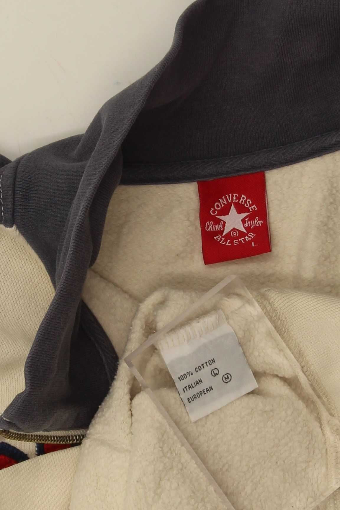 - AI Description: This Converse mens zip hoodie sweatshirt is crafted from soft, off white 100 percent cotton knit. It features a full zip closure and a comfortable regular fit. The hooded neckline offers casual warmth. Long sleeves and ribbed cuffs provide a classic silhouette. Practical front pockets add functionality. An embroidered spell-out logo provides subtle branding without a pattern.