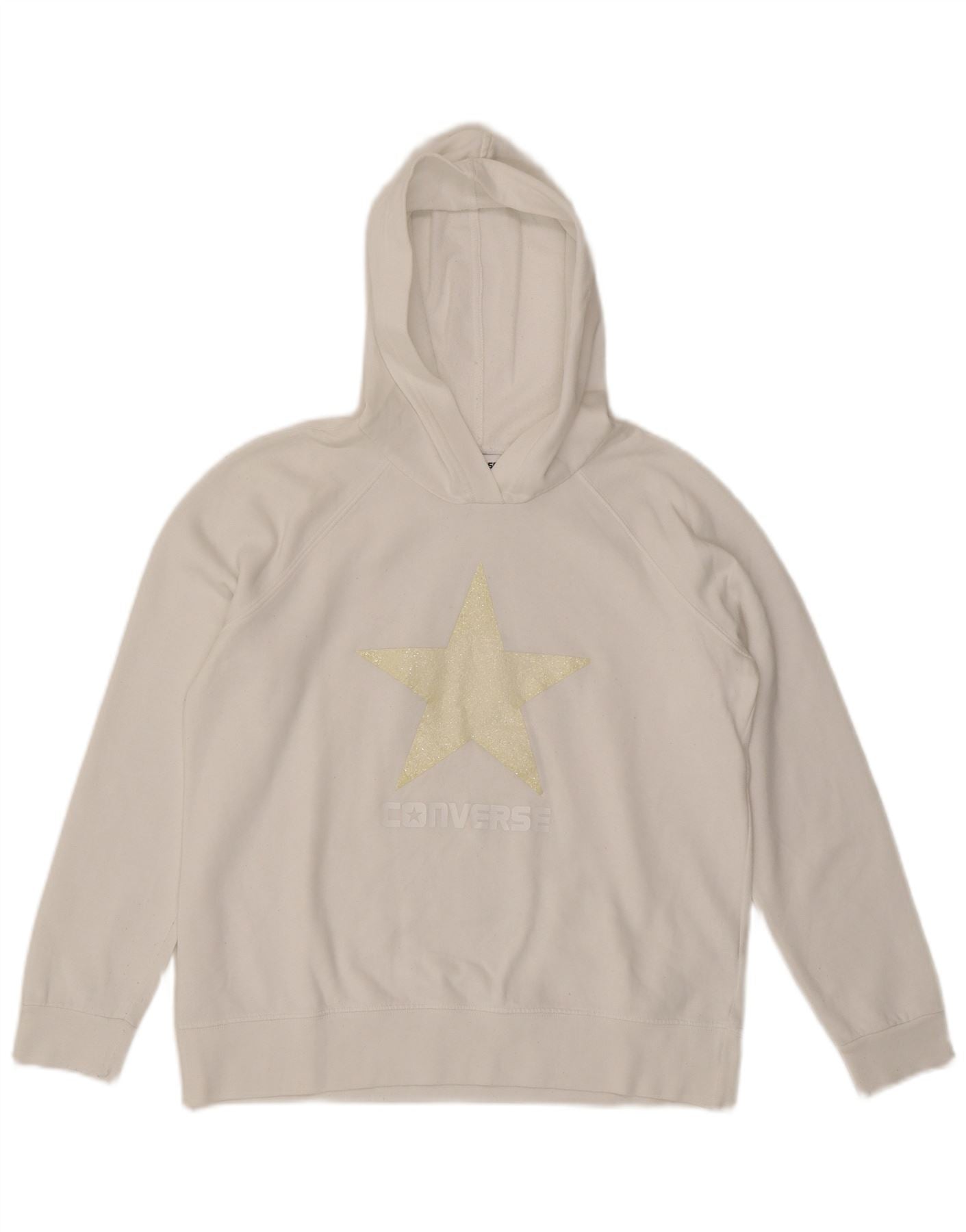 CONVERSE Felpa con cappuccio grafica da donna UK 14 Cotone bianco medio