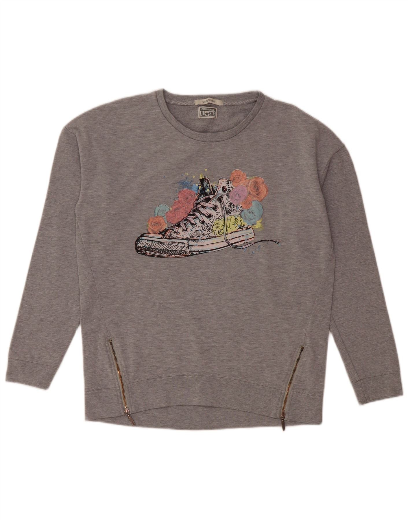 CONVERSE Felpa con grafica da donna Maglione UK 14 Cotone grigio medio