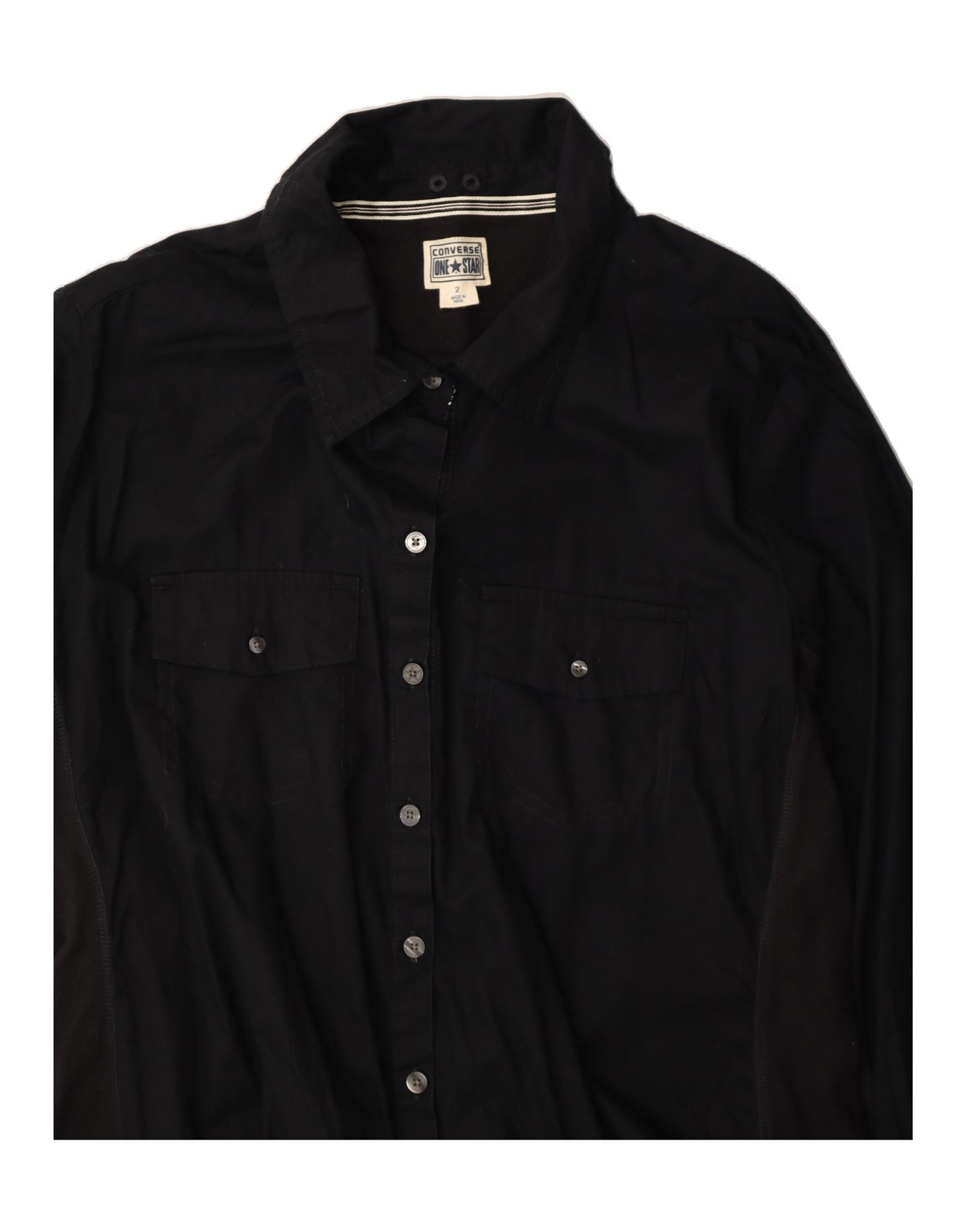 CONVERSE Womens Oversized Shirt US 2 XS Black Cotton