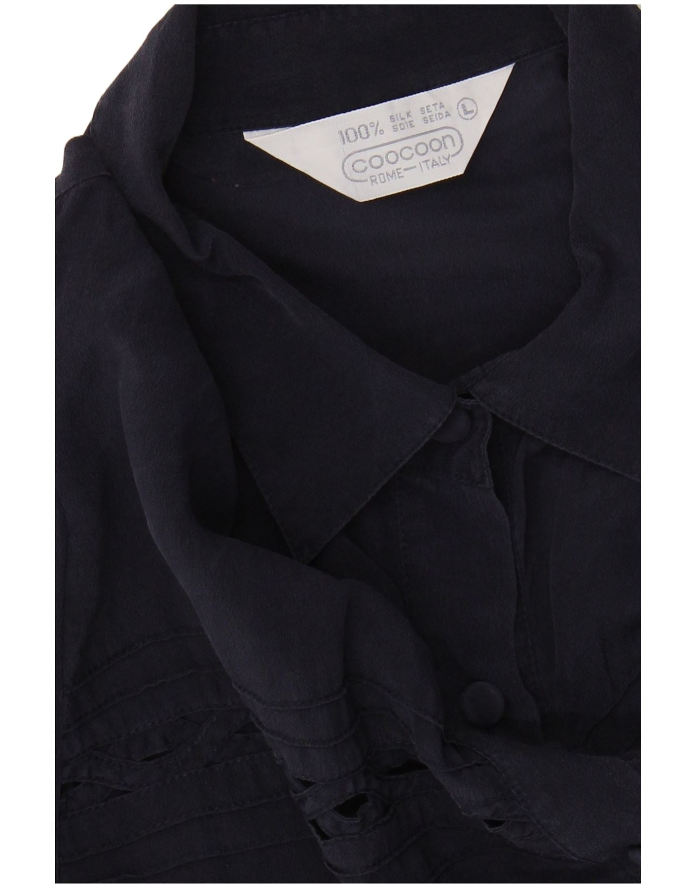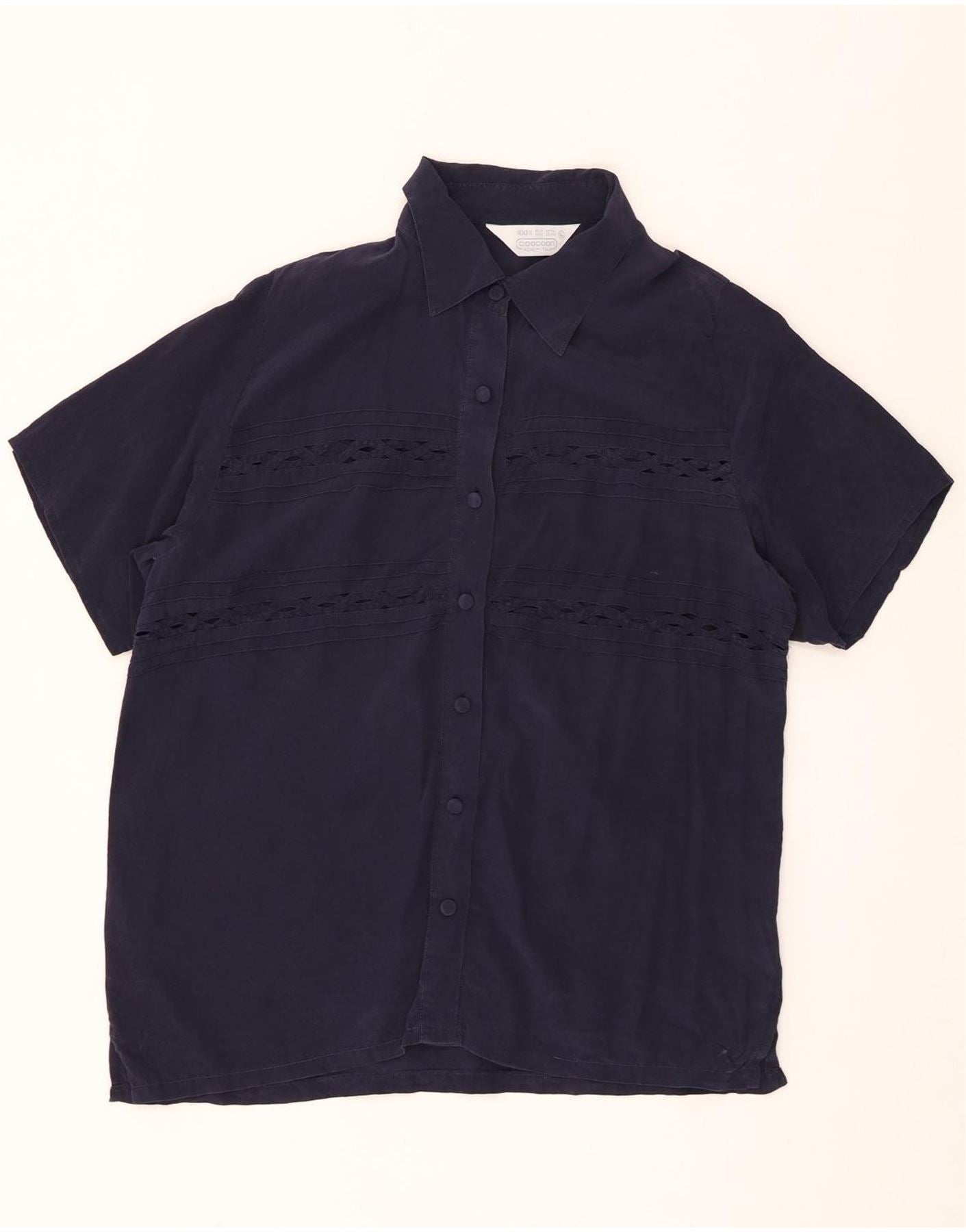 COOCOON Womens Short Sleeve Shirt Blouse UK 16 Large Navy Blue Silk