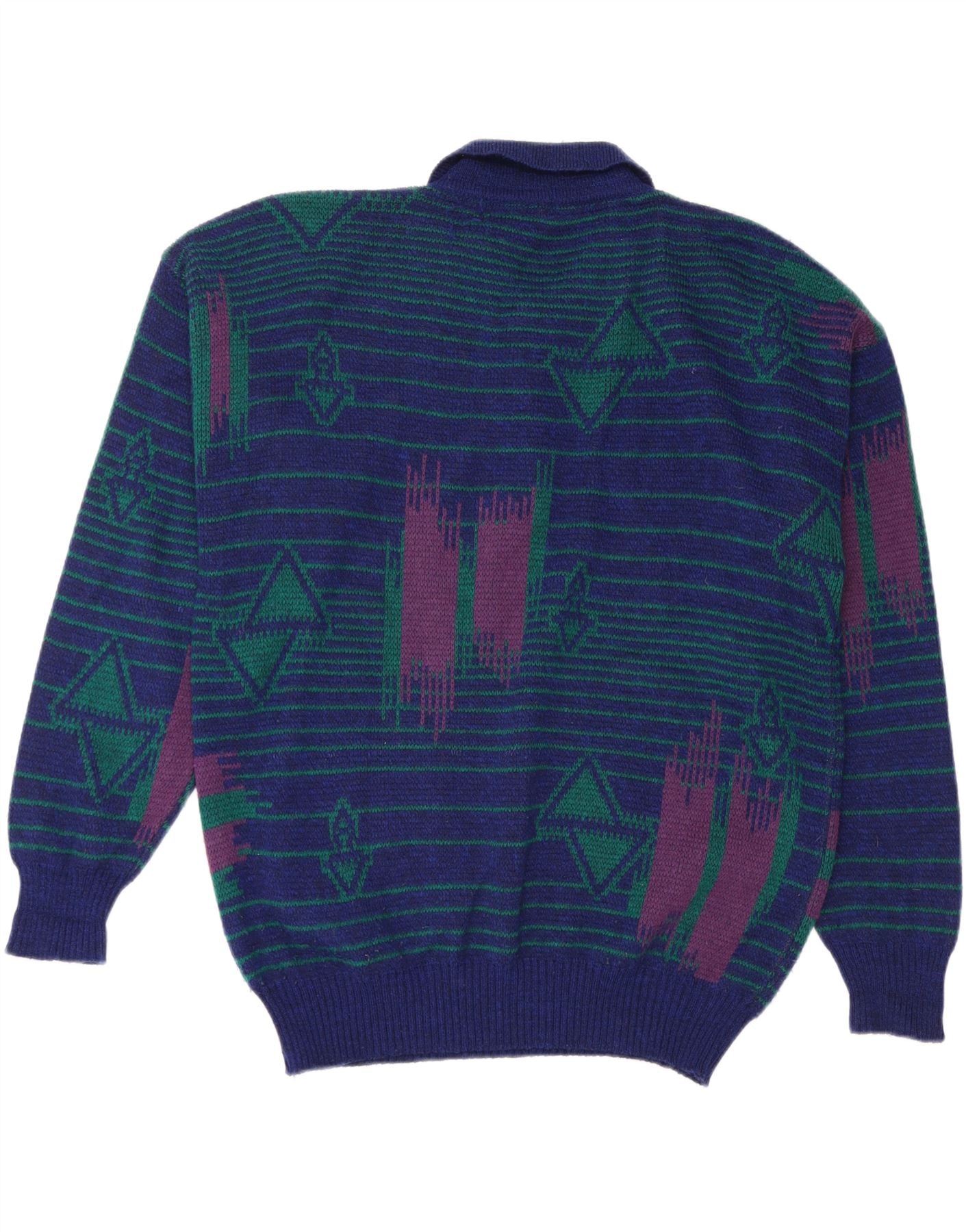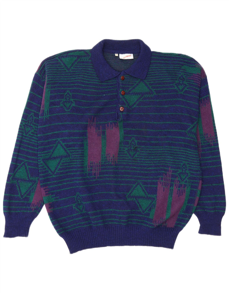 COSMOS Maglione da uomo con collo a polo XL Acrilico geometrico blu navy