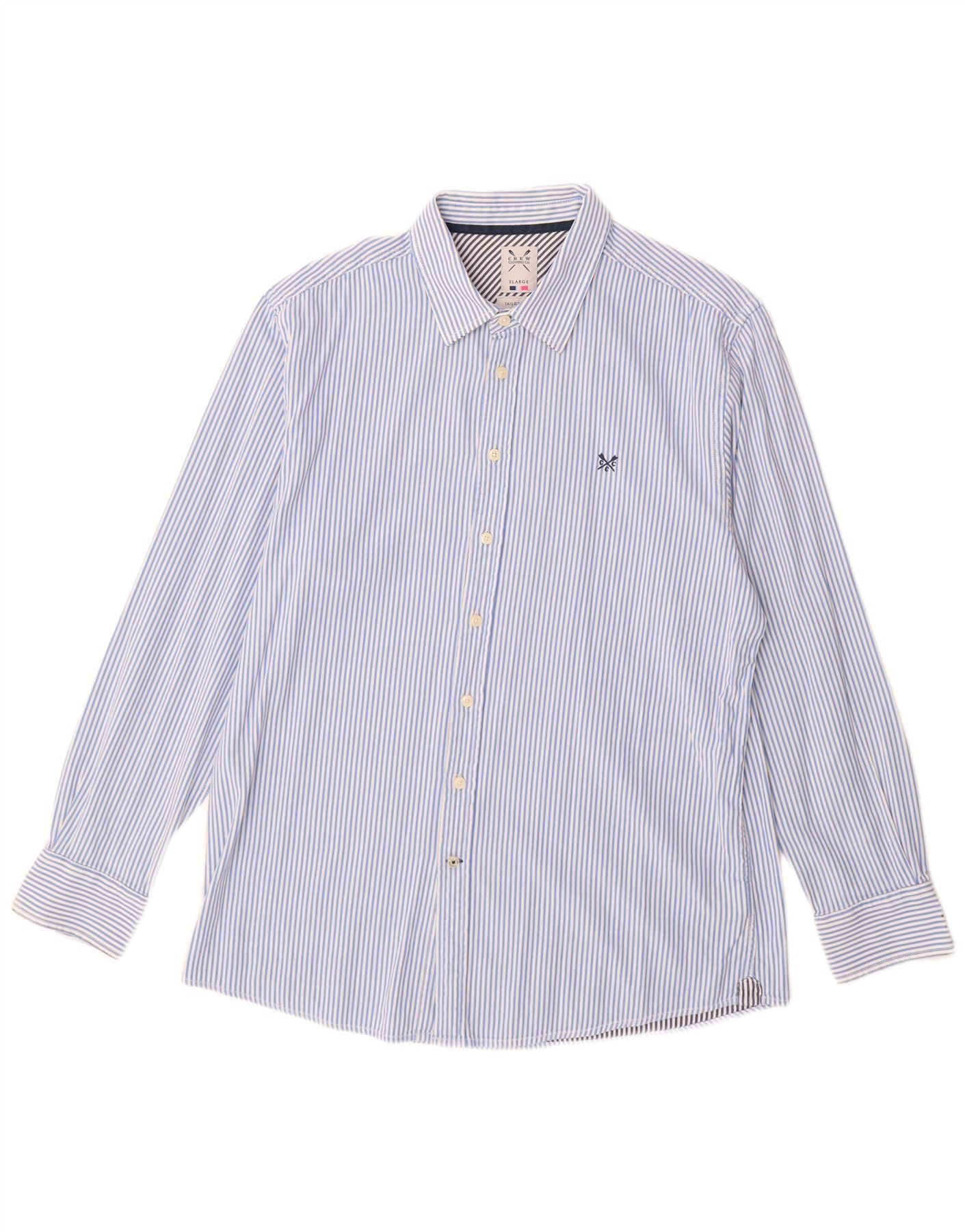 CREW CLOTHING Camicia da uomo su misura XL in cotone gessato blu