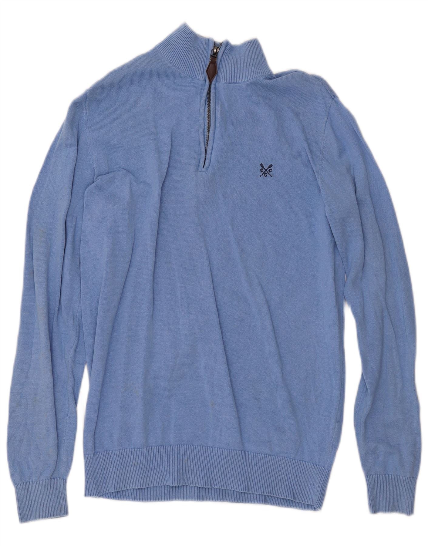 CREW CLOTHING Maglione da uomo con zip e collo piccolo in cotone blu