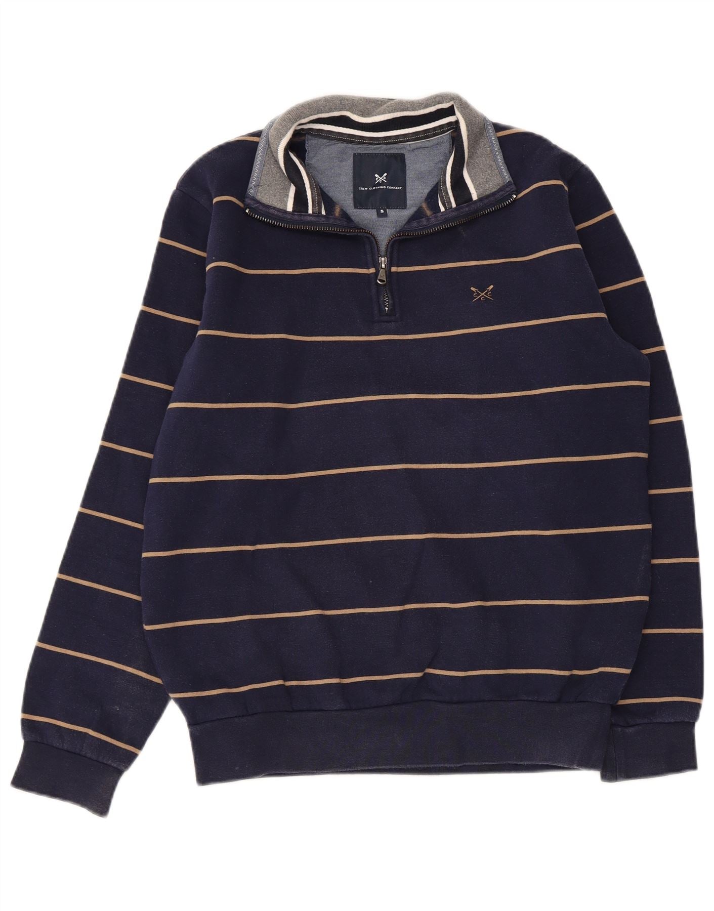 CREW CLOTHING Felpa da uomo con collo con zip, maglione piccolo a righe blu navy