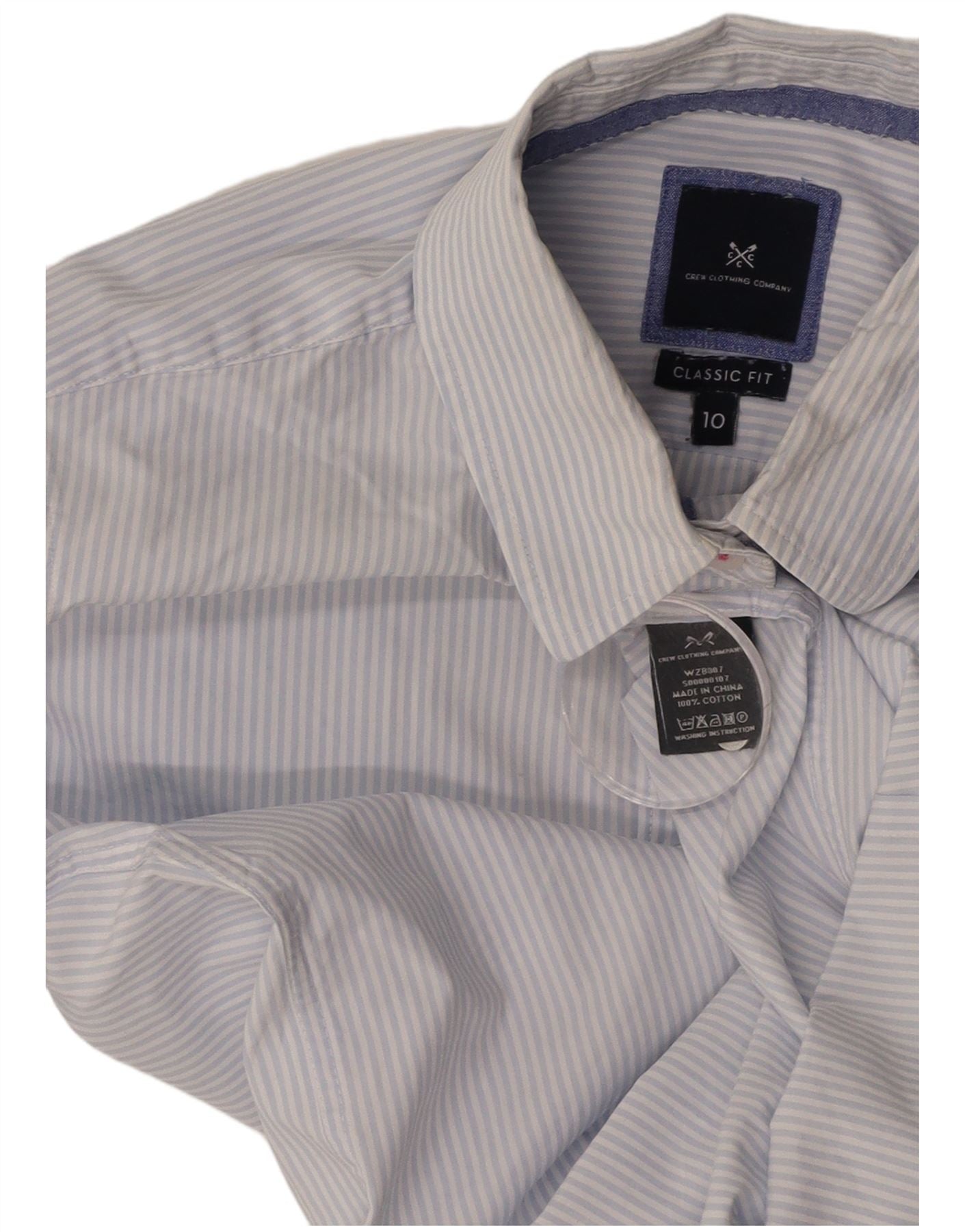 CREW CLOTHING Camicia da donna dalla vestibilità classica UK 10 Piccolo cotone a righe blu