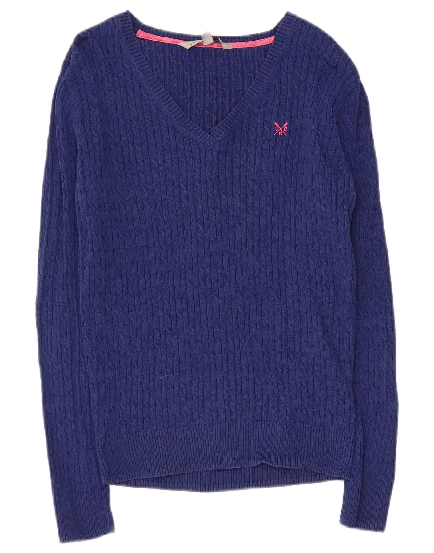 CREW CLOTHING Maglione da donna con scollo a V UK 12 Cotone blu medio