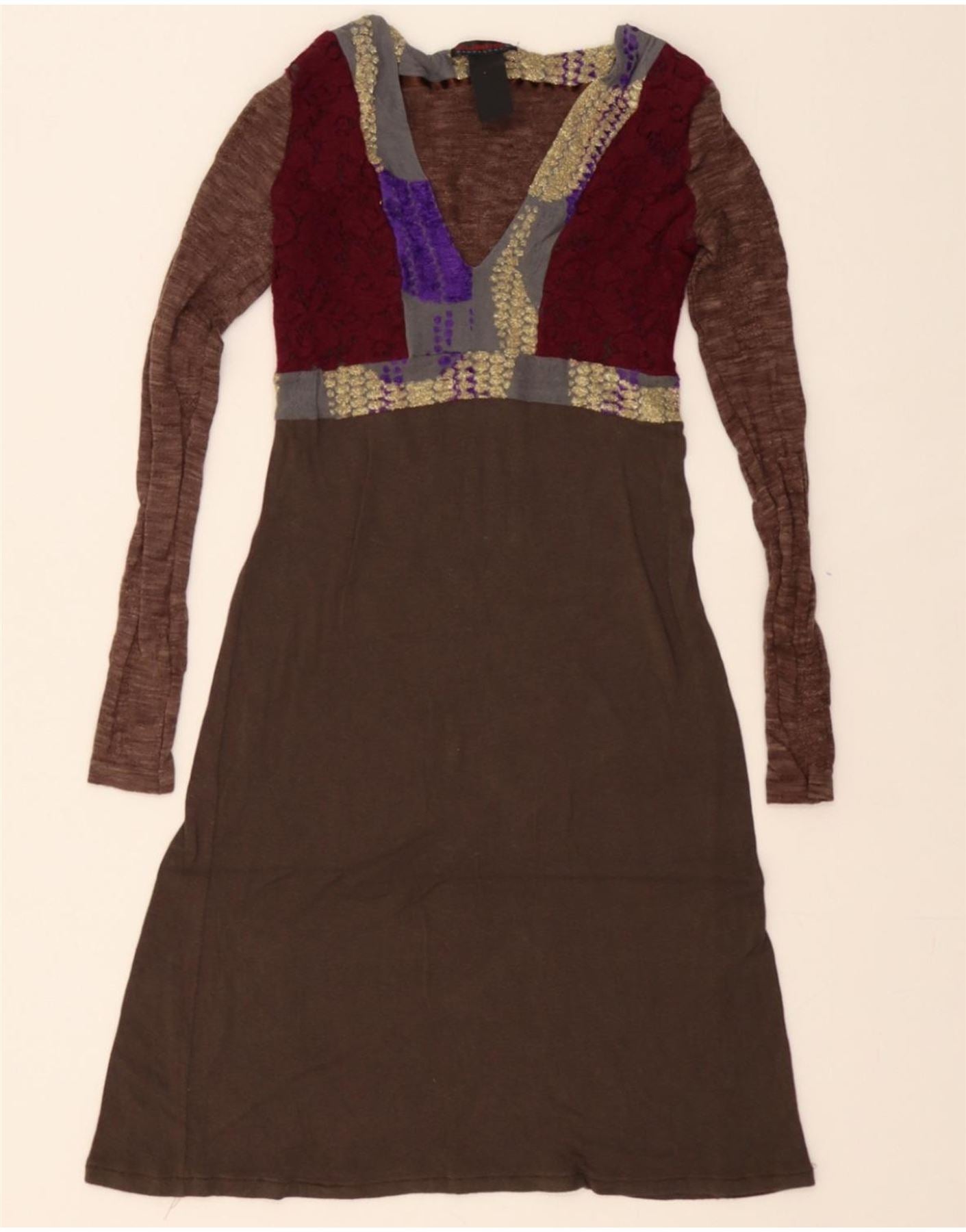 CUSTO BARCELONA Womens Long Sleeve A-Line Dress UK 4 XS Brown Colourblock