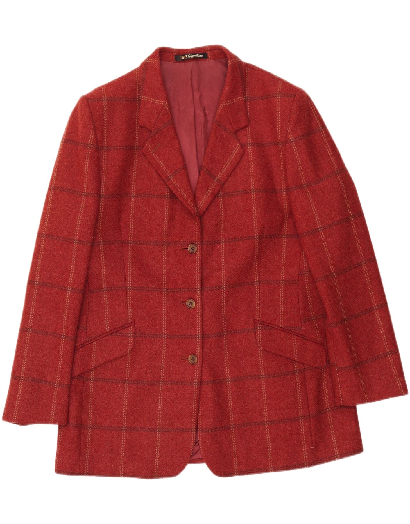 DAKS Womens 3 Button Blazer Jacket UK 14 Medium Red Check Wool