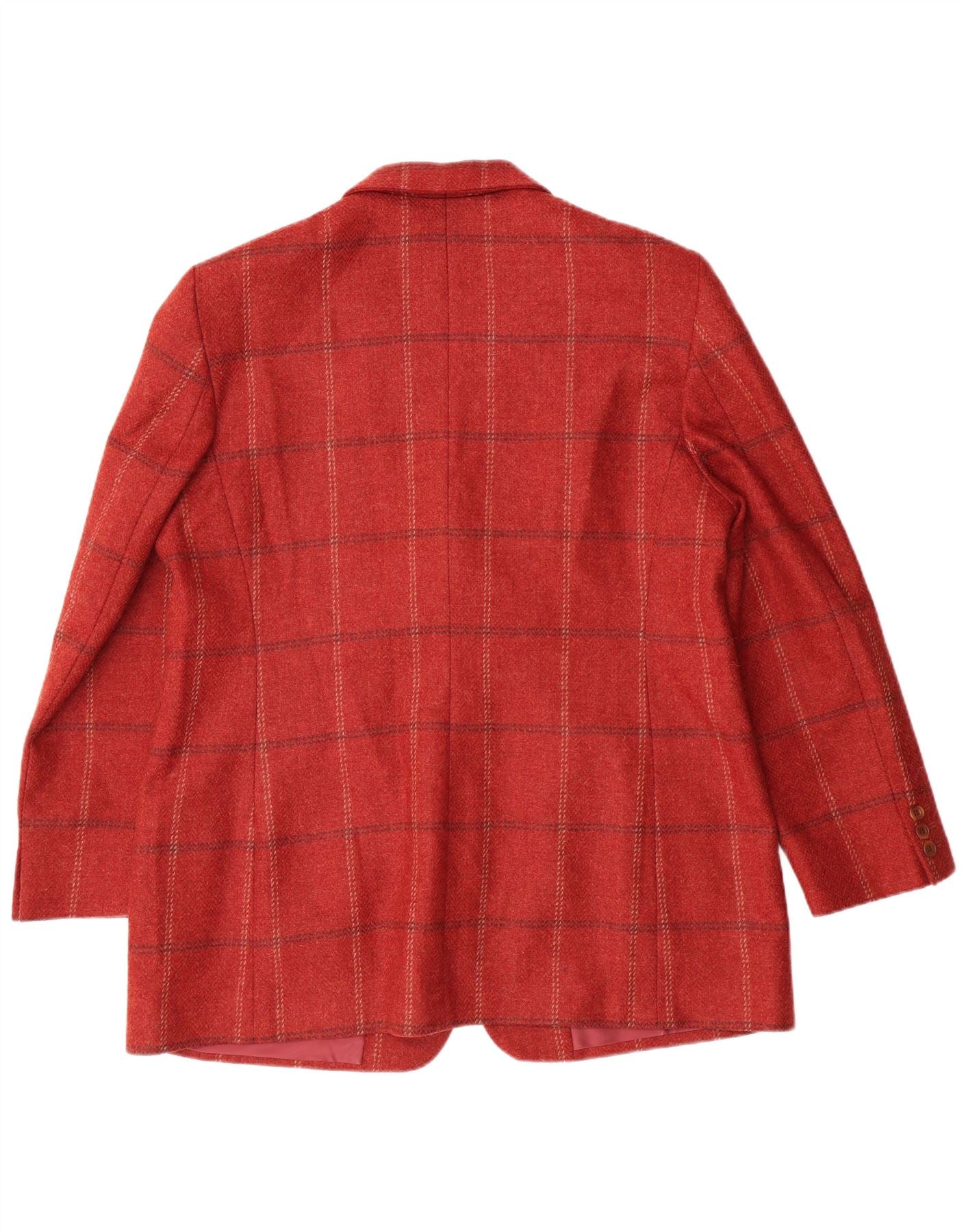 DAKS Womens 3 Button Blazer Jacket UK 18 XL Burgundy Check New Wool