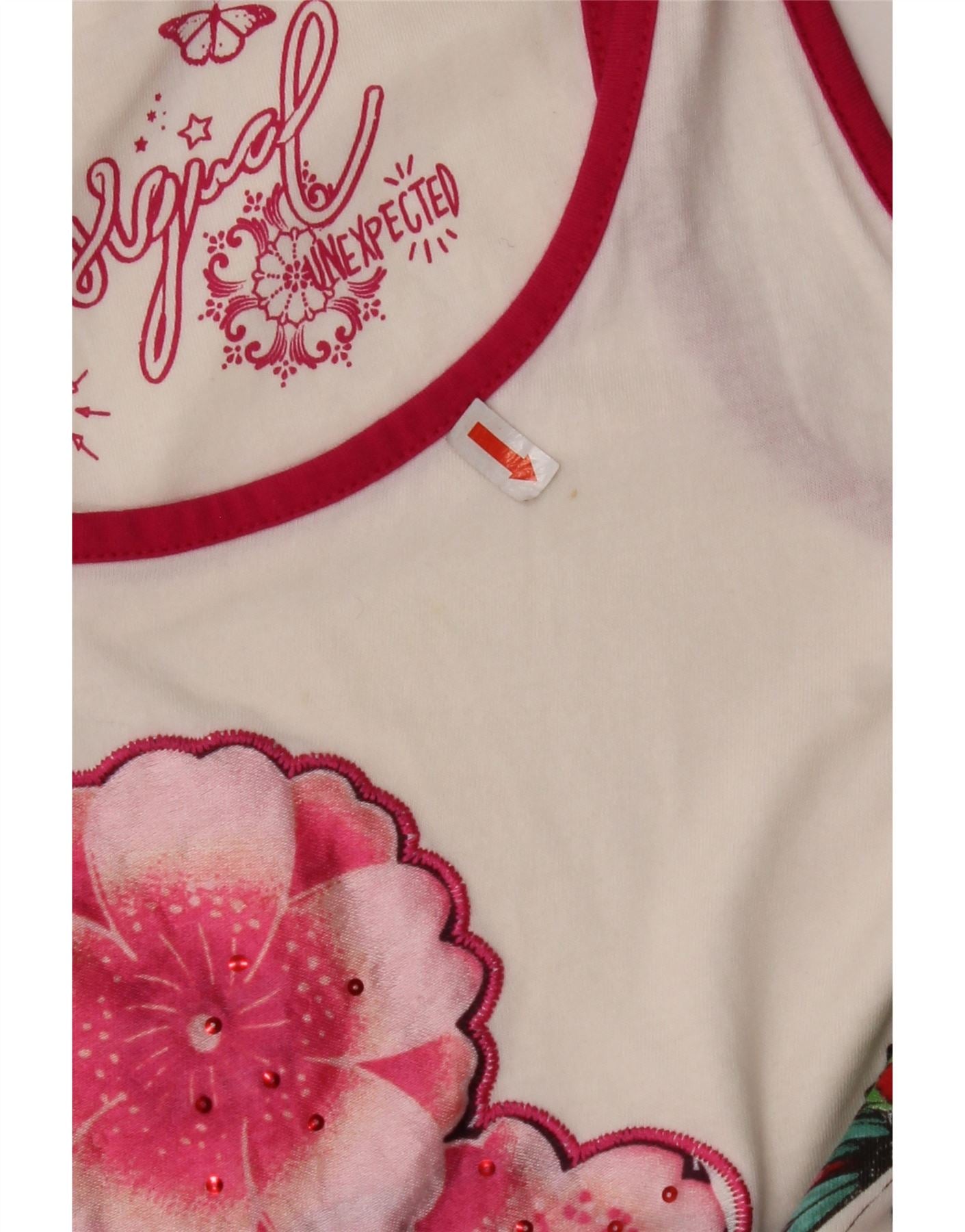 DESIGUAL Donna Camicia Lunga Camicetta UK 16 Large Bianca