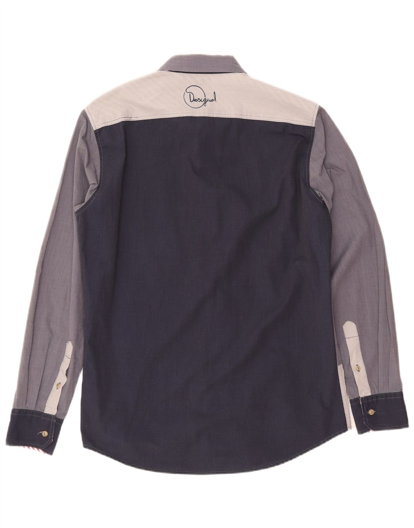 DESIGUAL Camicia grafica da uomo in cotone color block medio blu navy