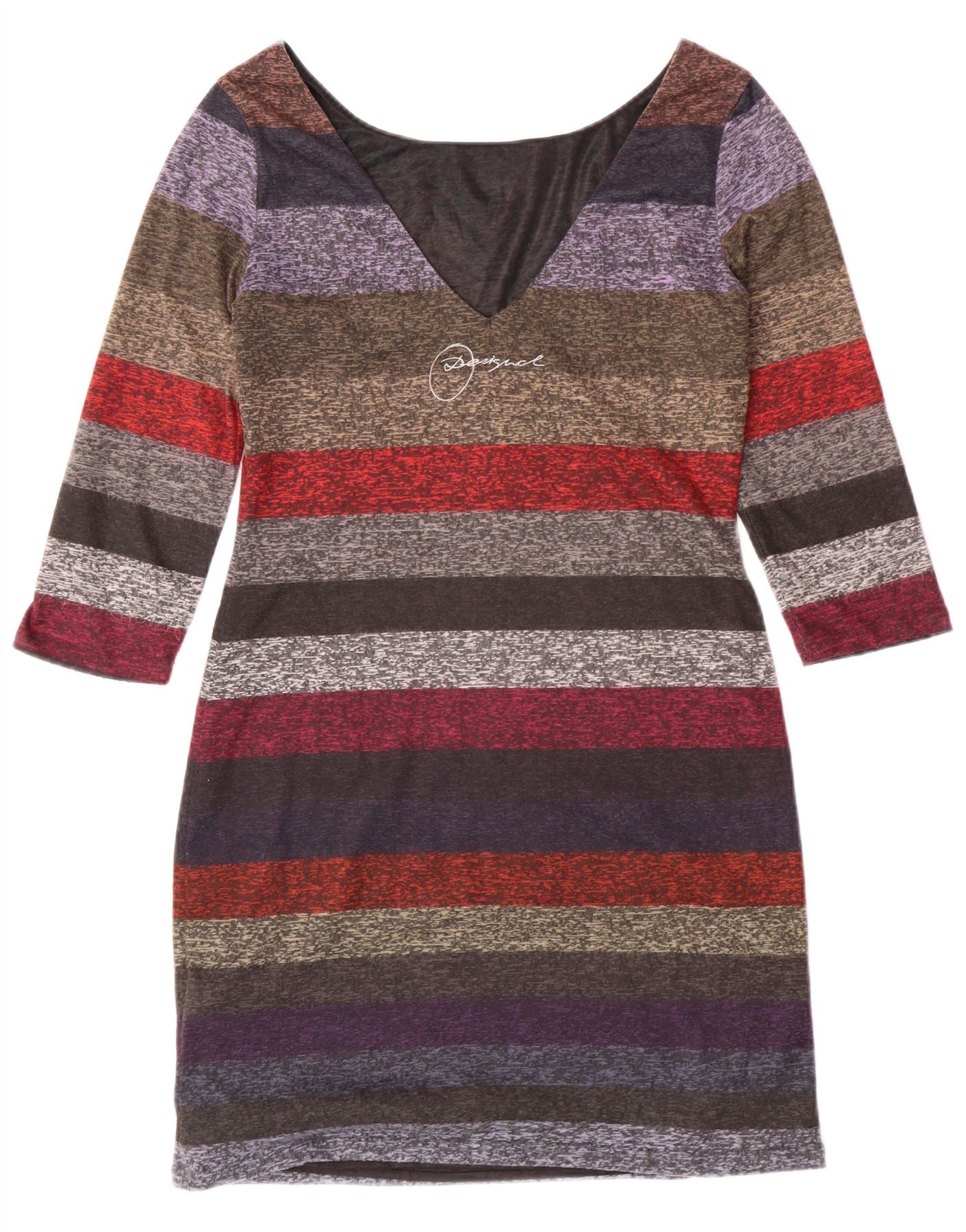 DESIGUAL Abito tubino da donna con maniche a 3/4 UK 12 Medio a righe multicolore