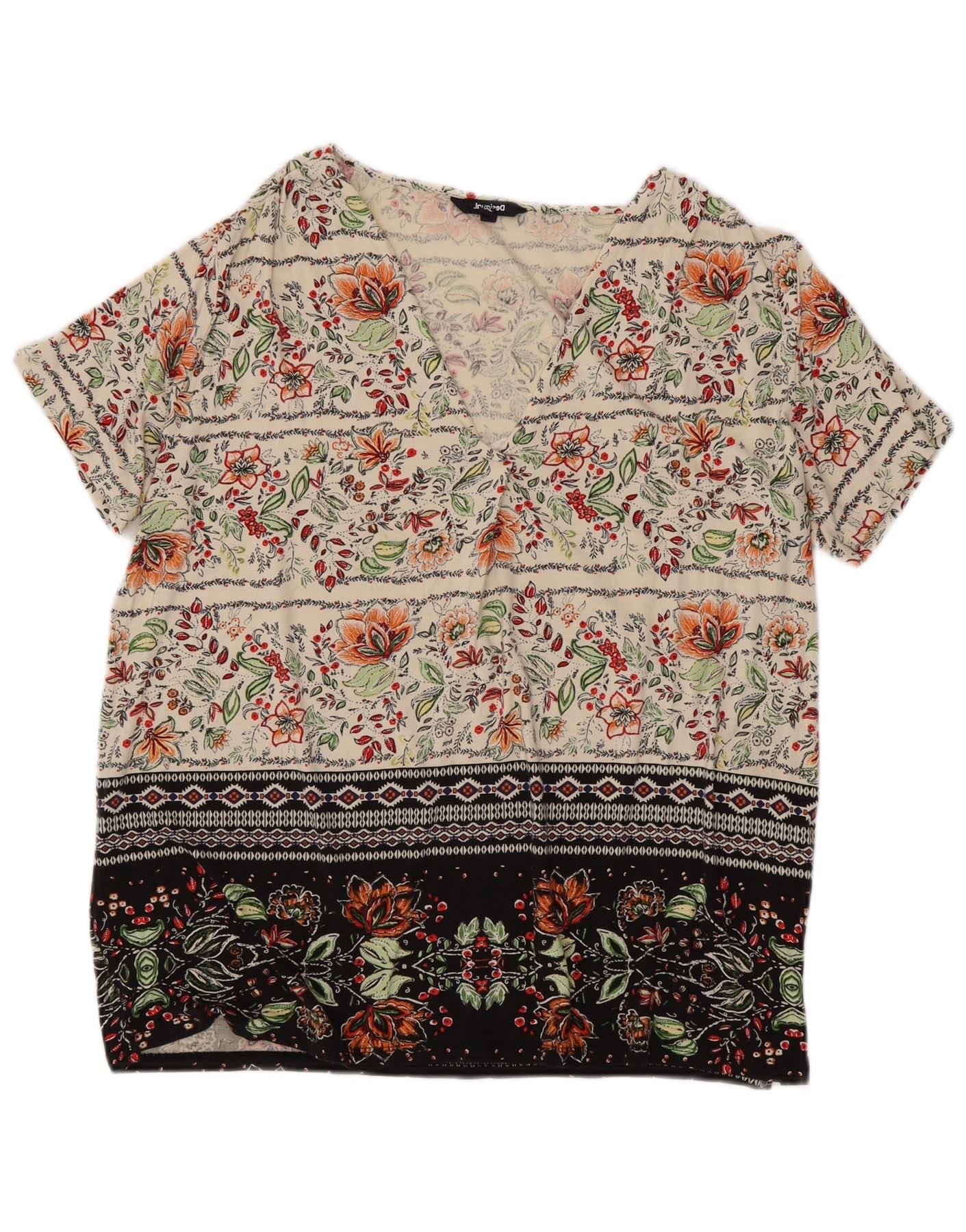 DESIGUAL Camicetta da donna Top UK 20 2XL Viscosa floreale bianco sporco