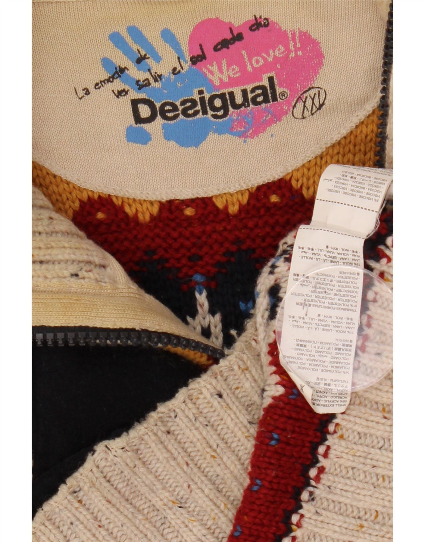 Maglione cardigan da donna DESIGUAL UK 20 2XL Poliestere a righe bianco sporco