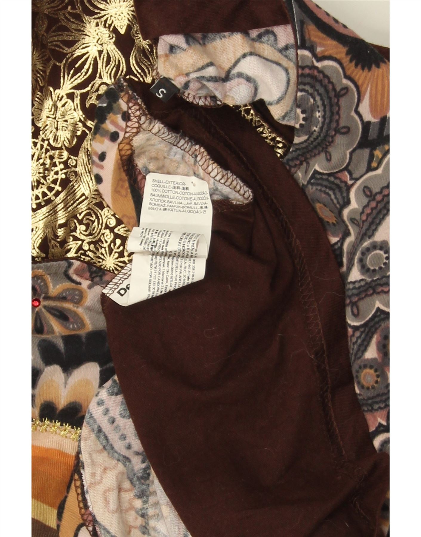 DESIGUAL Top tunica asimmetrica grafica da donna UK 10 piccolo floreale marrone