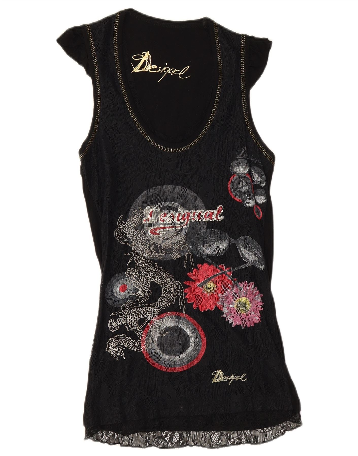 Desigual Donna Graphic Camicetta Top UK 6 XS Nero Floreale