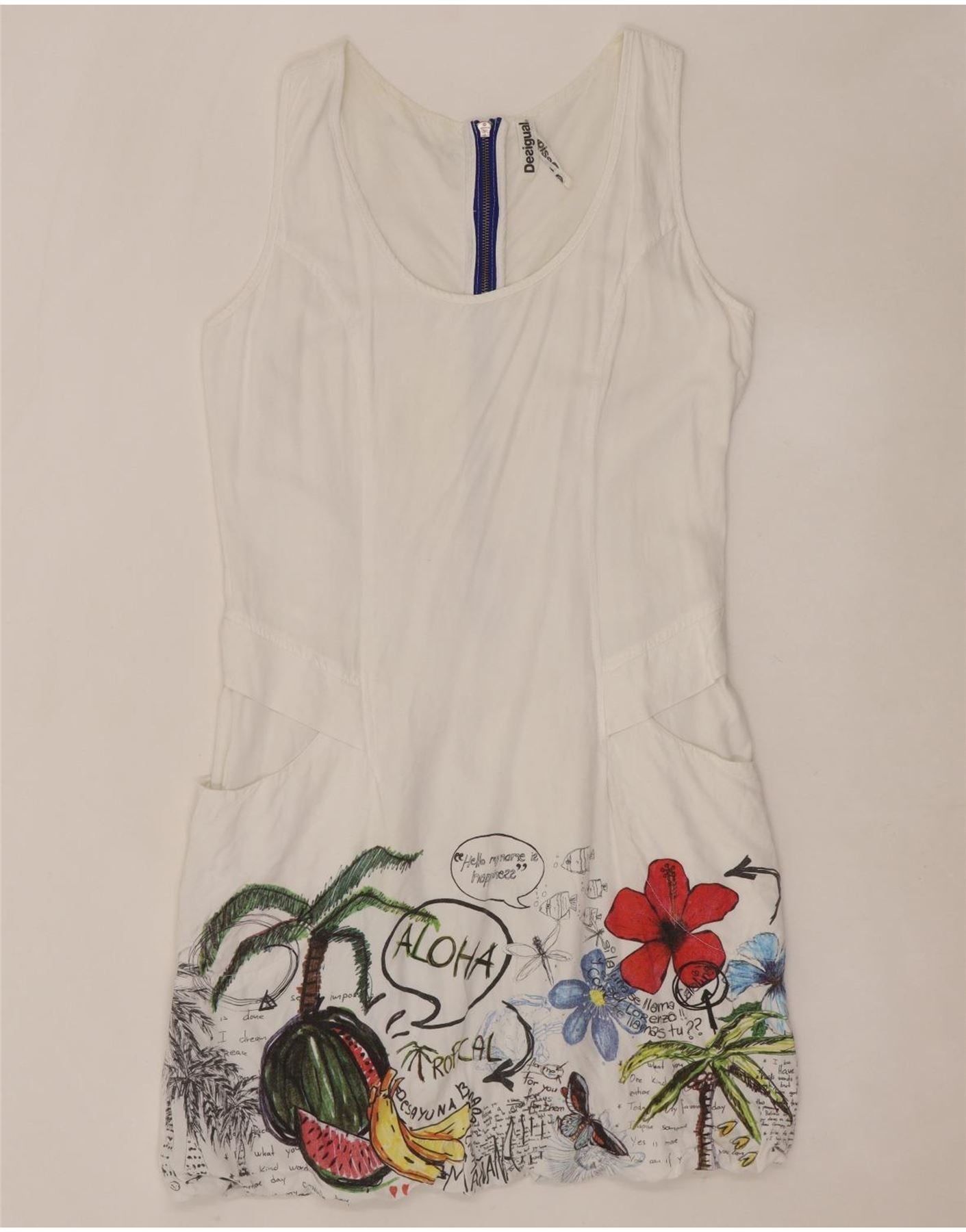 DESIGUAL Abito a palloncino senza maniche con grafica da donna EU 40 Medio Bianco floreale