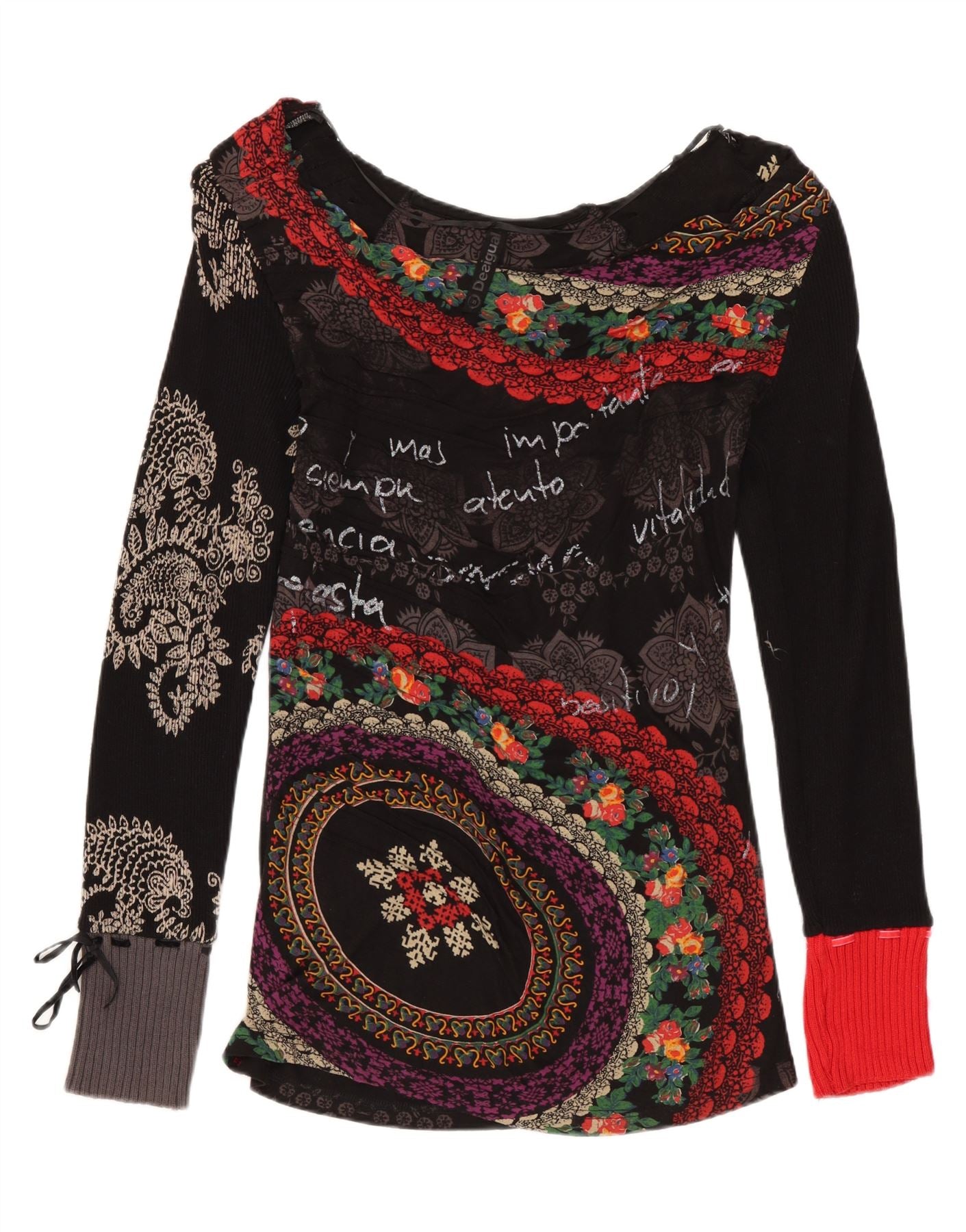 DESIGUAL Top grafico da donna manica lunga UK 12 cotone floreale nero medio